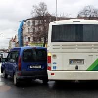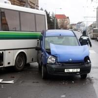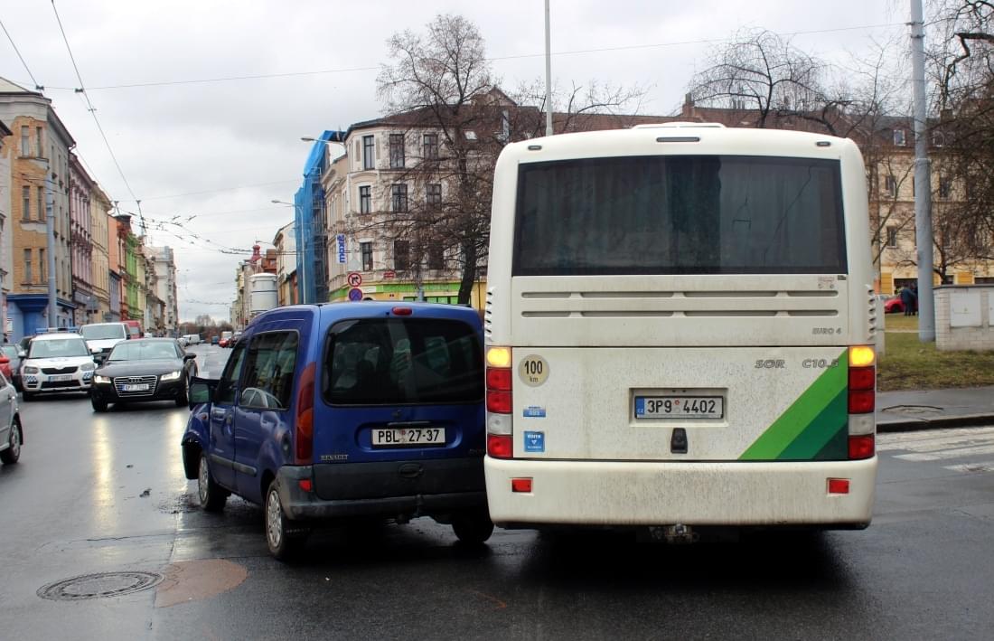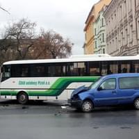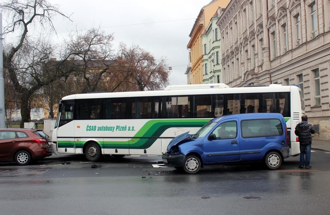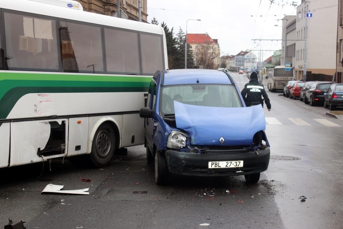 Dnes po půl dvanácté došlo na Husově náměstí na křižovatce Husova x Kotkova k nehodě autobusu, přepravujícího asi šest cestujících, s osobním vozidlem Renault Kangoo.