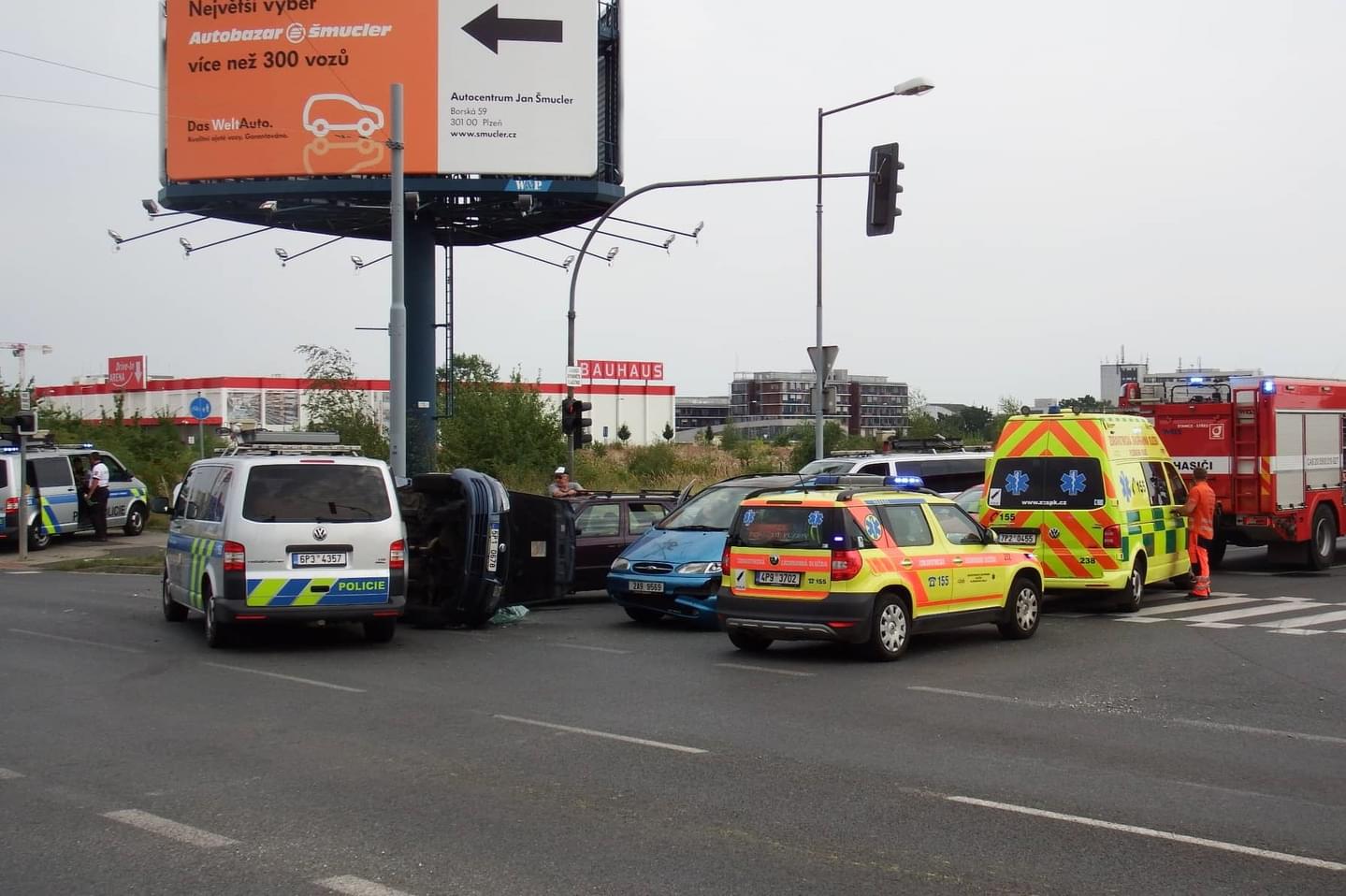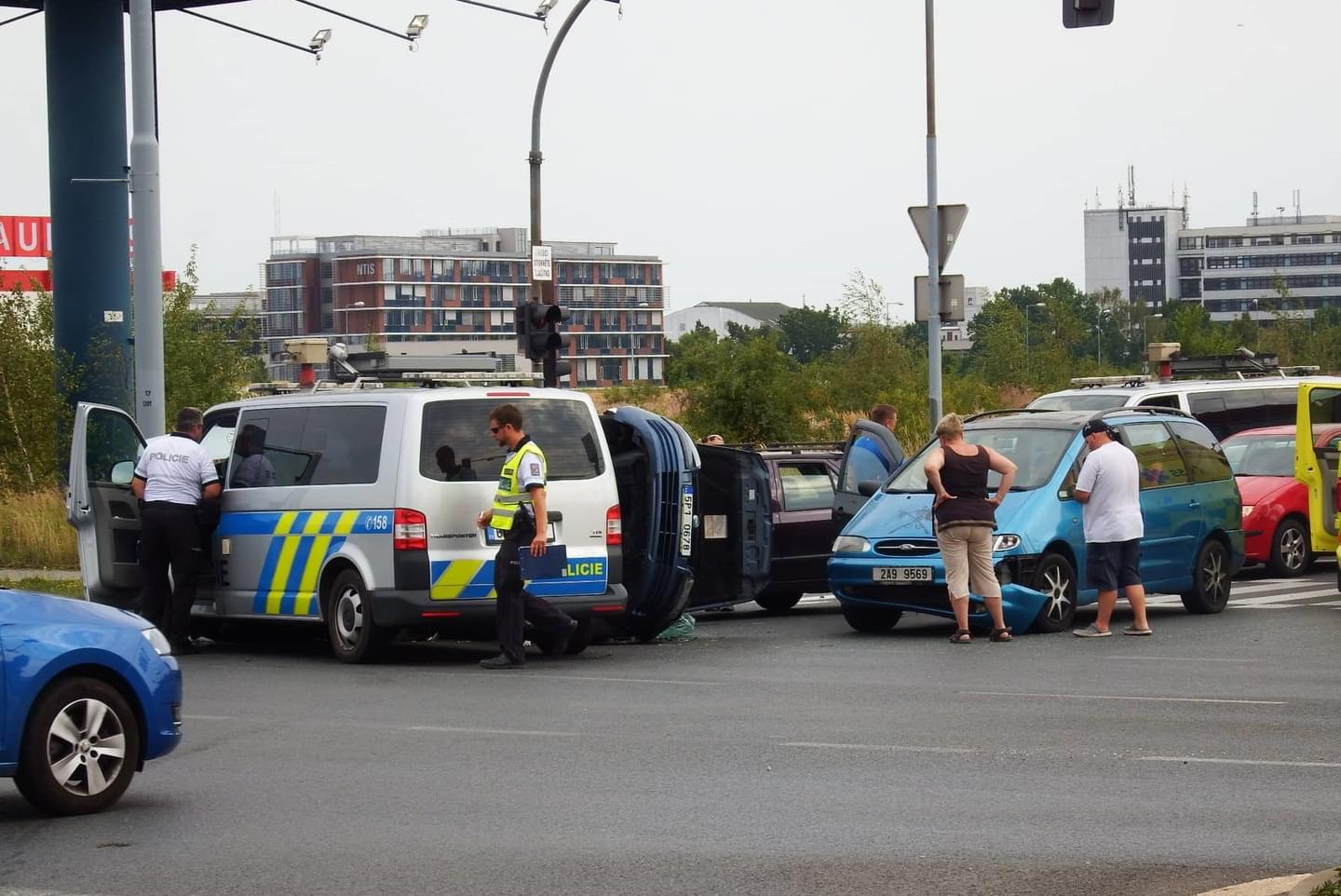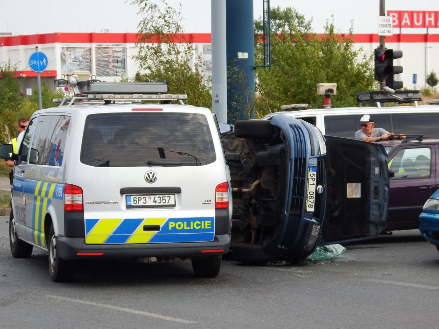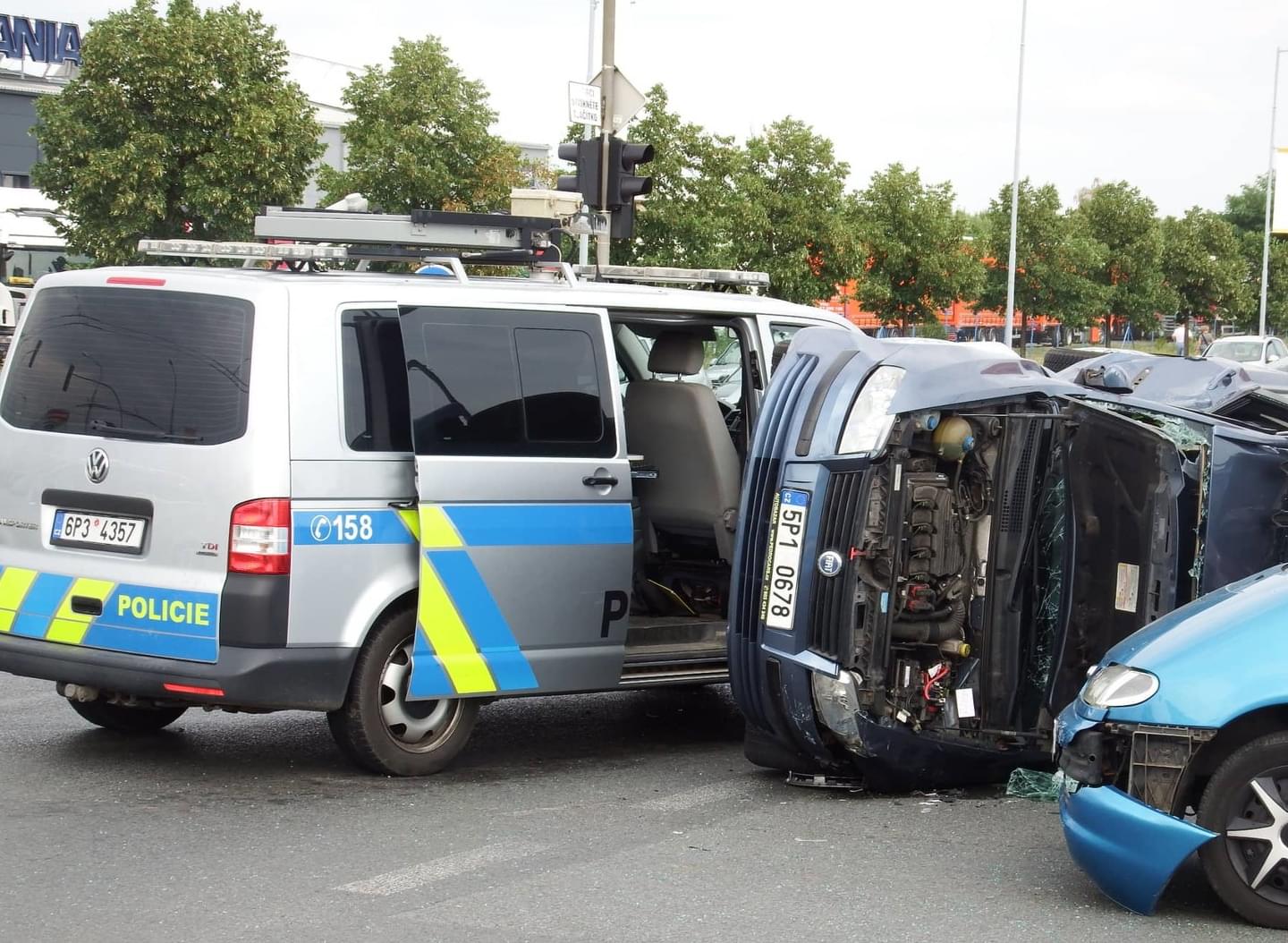 Na křižovatce Folmavská x Borská se střetla celkem čtyři vozidla a to Škoda Fabia s přívěsným vozíkem, Ford, Fiat a VW Transportér dopravní policie, přičemž Fiat skončil převrácený.