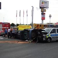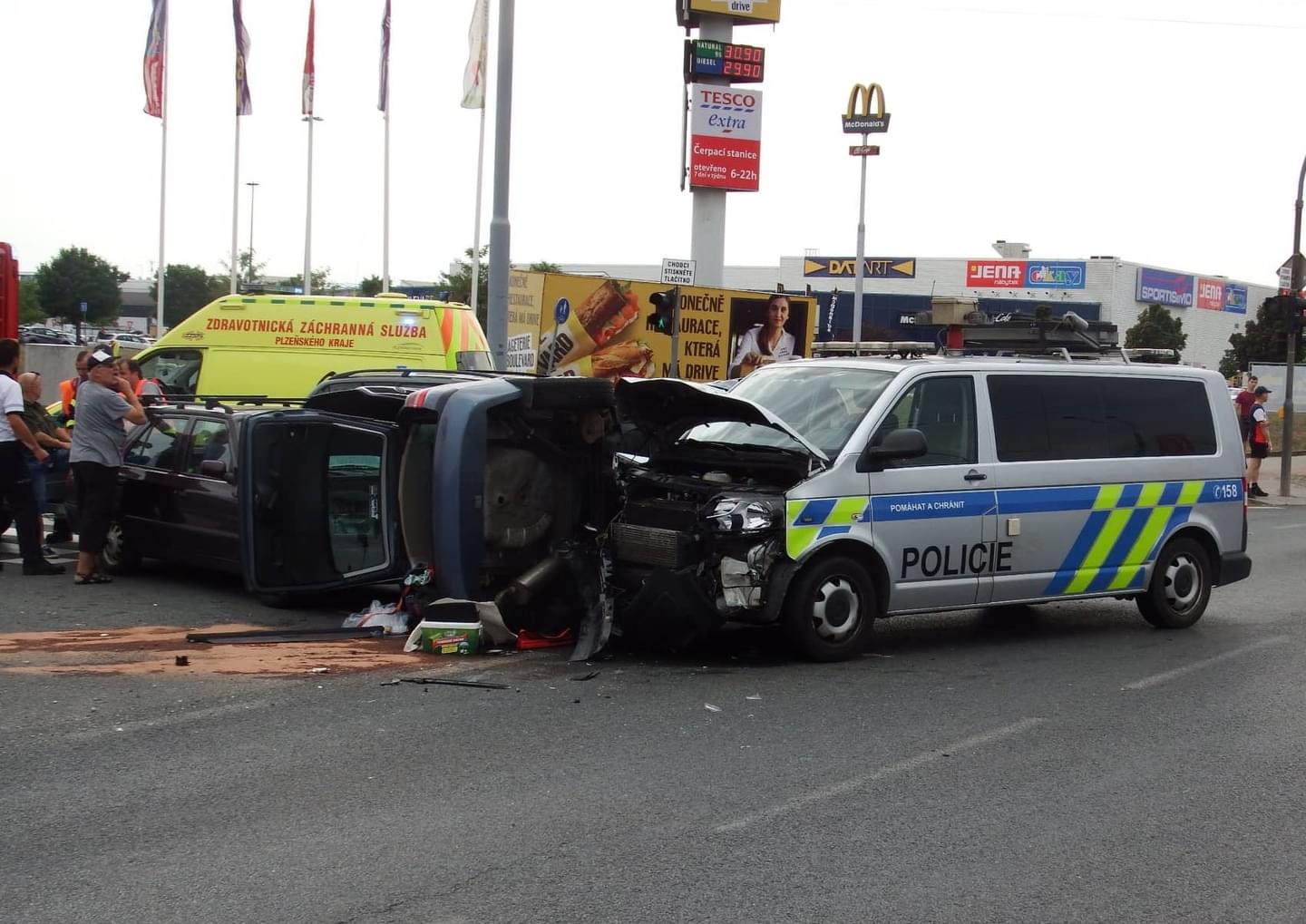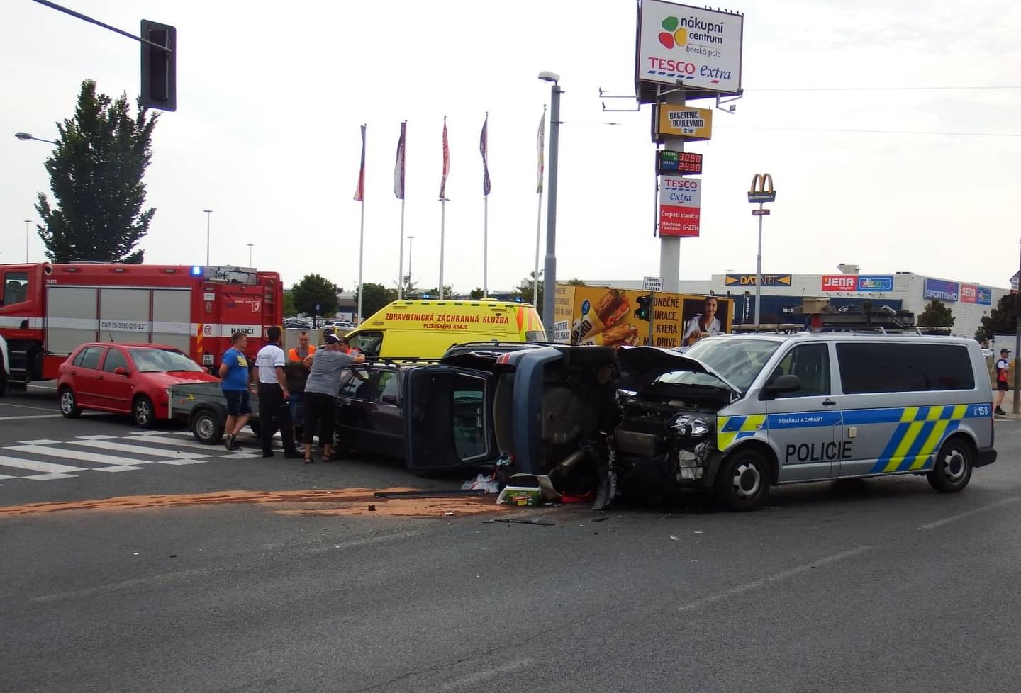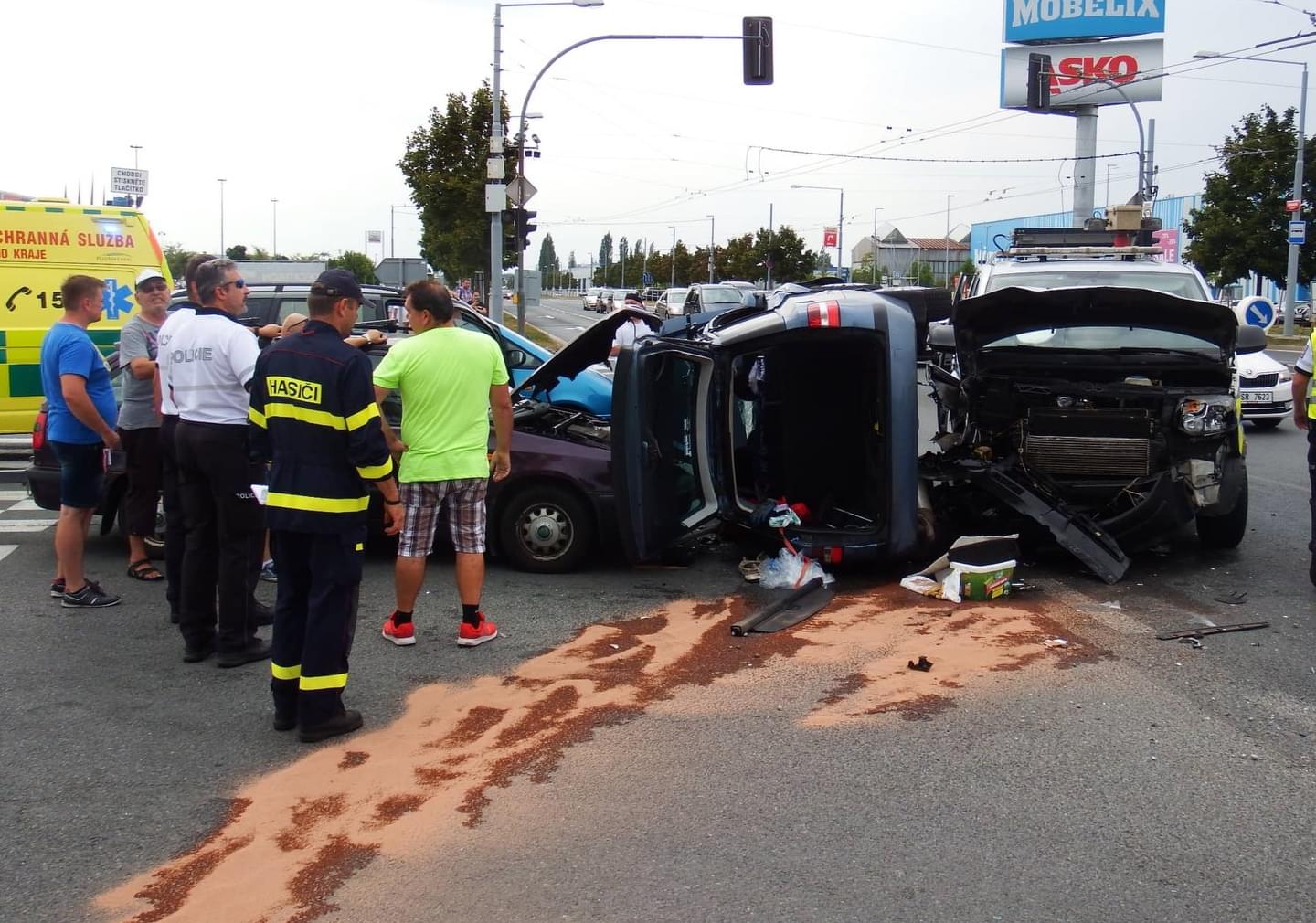 Na křižovatce Folmavská x Borská se střetla celkem čtyři vozidla a to Škoda Fabia s přívěsným vozíkem, Ford, Fiat a VW Transportér dopravní policie, přičemž Fiat skončil převrácený.