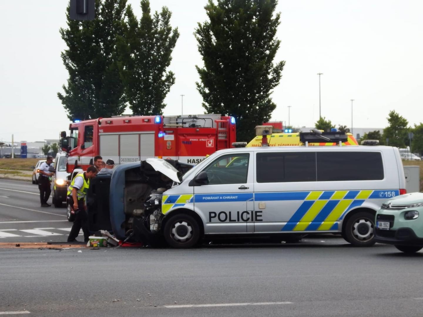 Na místě probíhá odstraňování následků nehody a vyšetřování, této křižovatce se prosím vyhněte.