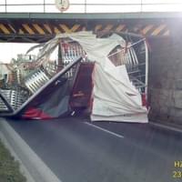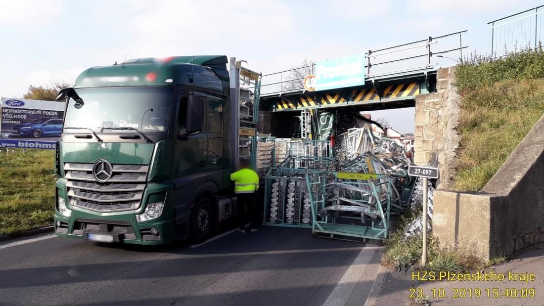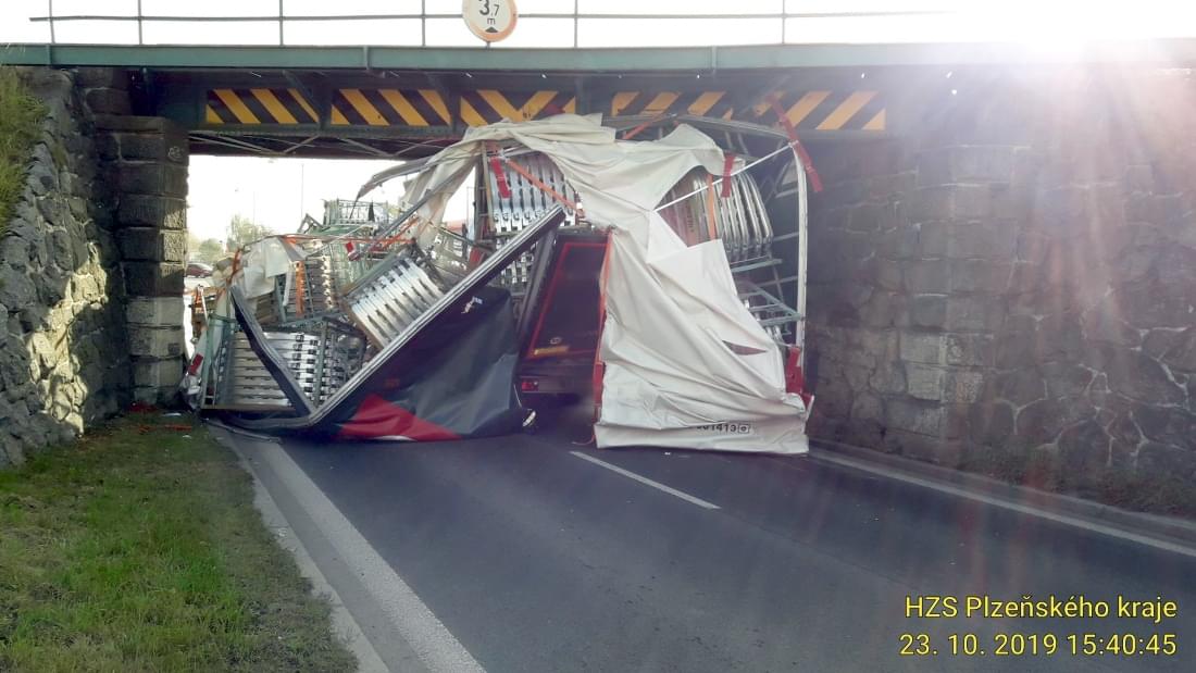 Větší smůlu měl ale o pět minut později řidič kamionu na ulici 5. května v Klatovech, který o železniční most srazil náklad z návěsu. Zde nehoda blokuje průjezd a policisté odklánějí dopravu kolem mlékárny. Podle našich informací nedošlo při nehodě ke zranění osob.