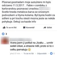 Paní prohledala okolí, zda se nezmýlila a nezaparkovala jinde, a pak celý případ oznámila policii. Následně také na diskuzní skupinu Plzeňáci nasdílela prosbu, zda vůz někdo neviděl, samozřejmě i s popisem svého auta. Díky výrazným markantům vozu jí téměř okamžitě lidé začali hlásit, kde a kdy vůz viděli, včetně toho, že vůz řídí Rom, který ale vůbec řídit neumí. Paní o těchto zjištěních průběžně informovala policii.