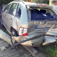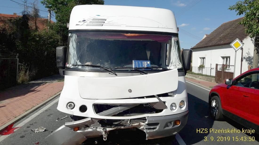 K řetězové srážce čtyř vozidel došlo kolem půl čtvrté odpoledne na okraji Horní Lukavice ve směru na Přeštice, kde do kolony vozidel za odbočujícím autem narazil cizinec s obytným vozem Mercedes - Benz. Náraz odmrštil tři osobní automobily Volvo, Škodu Fabia a Škodu Octavia, přičemž jeden z nich byl vyhozen mimo silnici, kde skácel elektrický sloupek domu.
