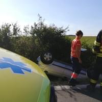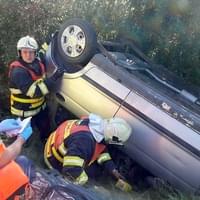 Podle našich informací ve voze cestovali dva Slováci a několik psů. Řidič ze zatím neznámého důvodu přejel do protisměru, vyjel ze silnice a převrátil se v příkopu na střechu.