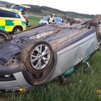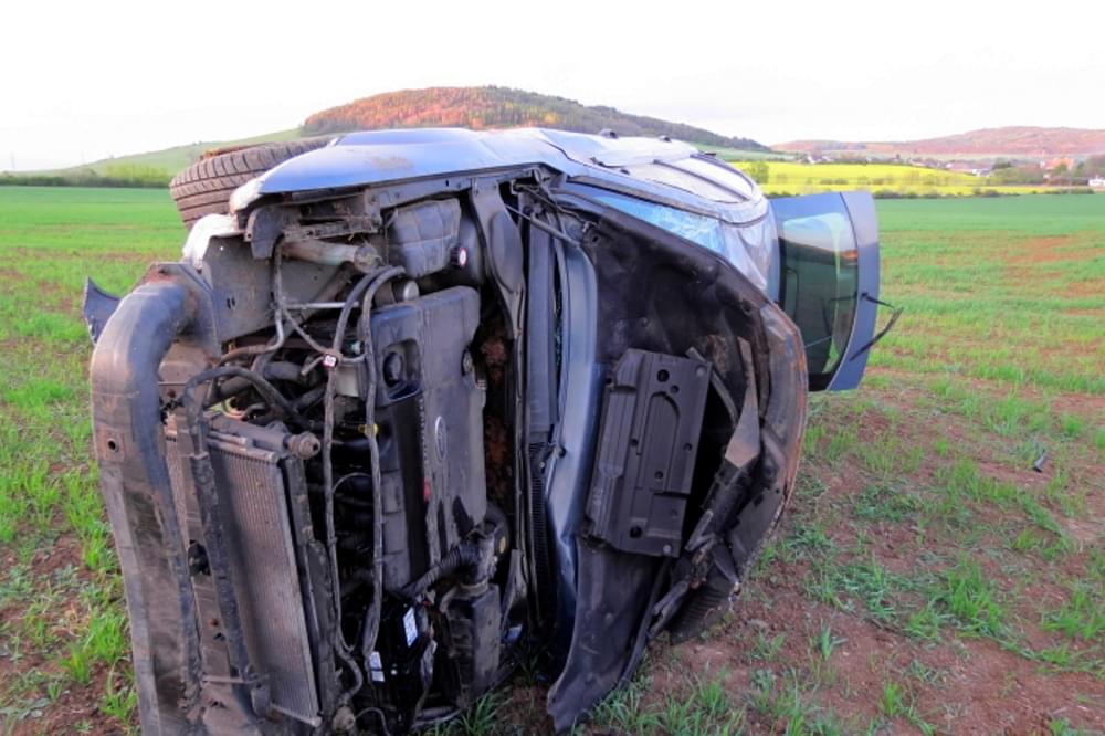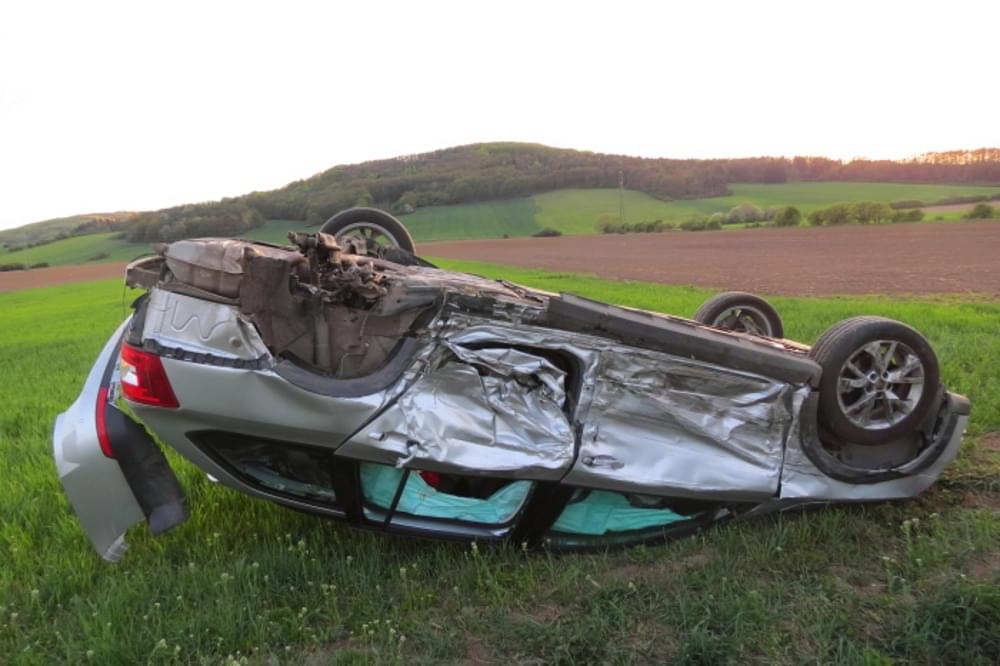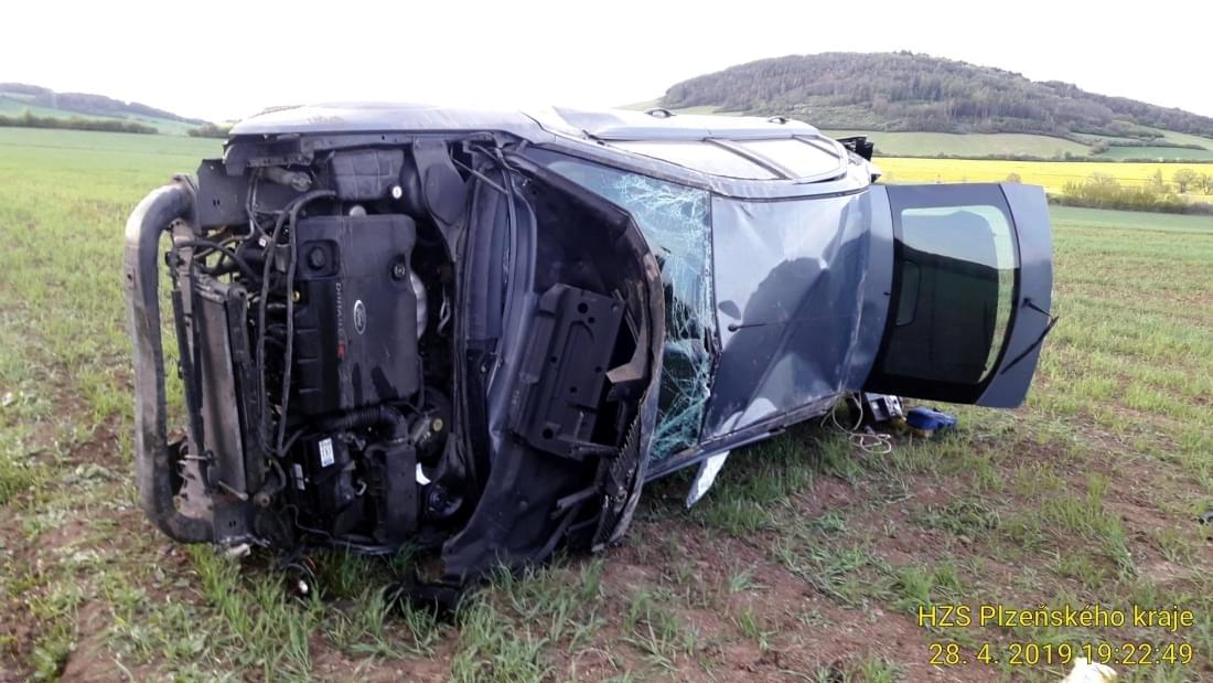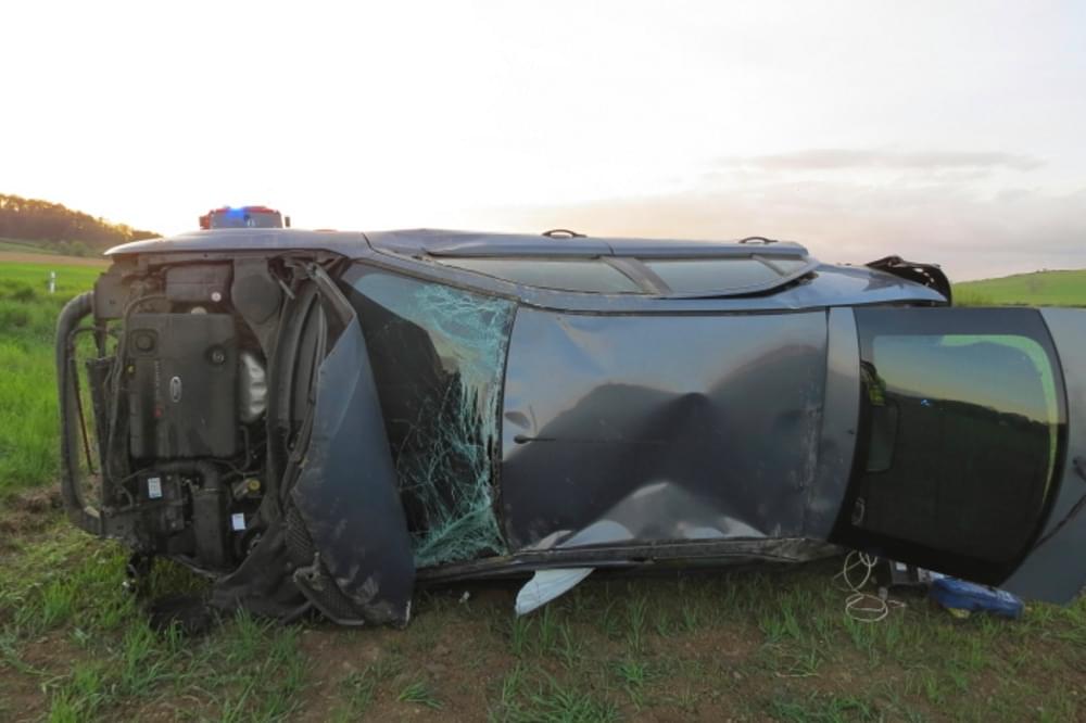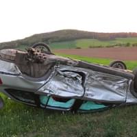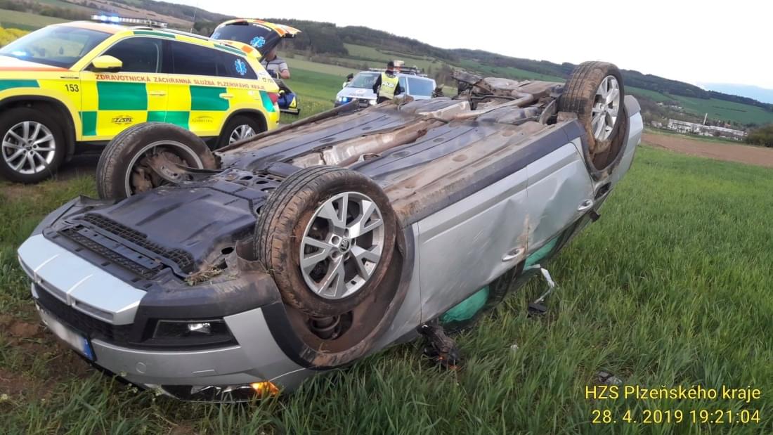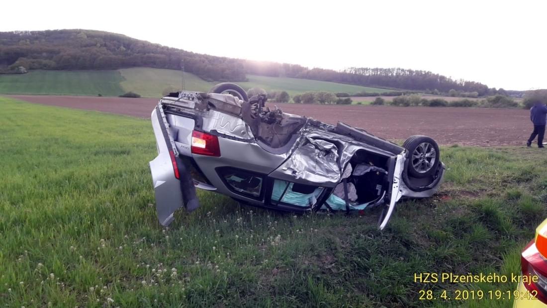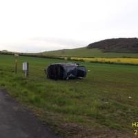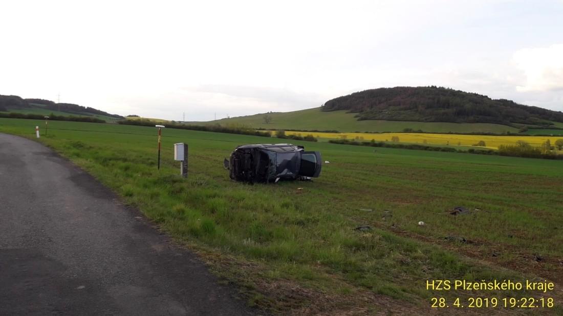 Včera před sedmou hodinou večer došlo u Lhovic na Klatovsku ke střetu dvou vozů, po kterém zůstalo jedno auto na střeše a druhé na boku.