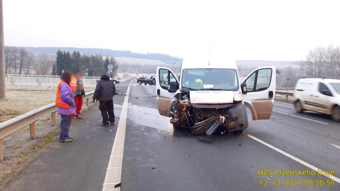 Ke střetu dodávky Fiat Ducato a osobního vozu Škoda Superb došlo dnes krátce po osmé hodině ráno na křižovatce mezi Třemošnou a Zálužím.