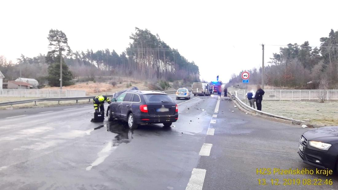 Nehoda se naštěstí obešla bez zranění, kvůli likvidaci uniklých provozních kapalina úklidu ale na místo vyjeli i hasiči.