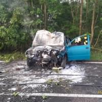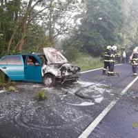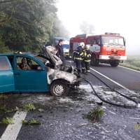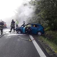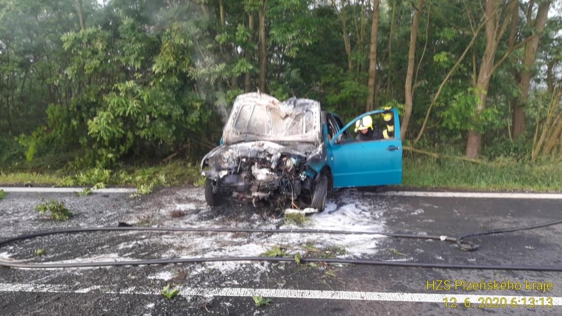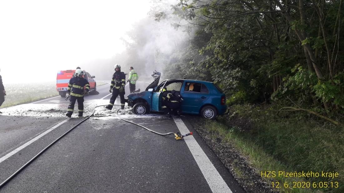 Dnes před šestou hodinou ráno došlo na hlavním tahu mezi Klatovy a Domažlicemi u Bořic k havárii vozu Škoda Fabia s následným požárem.
