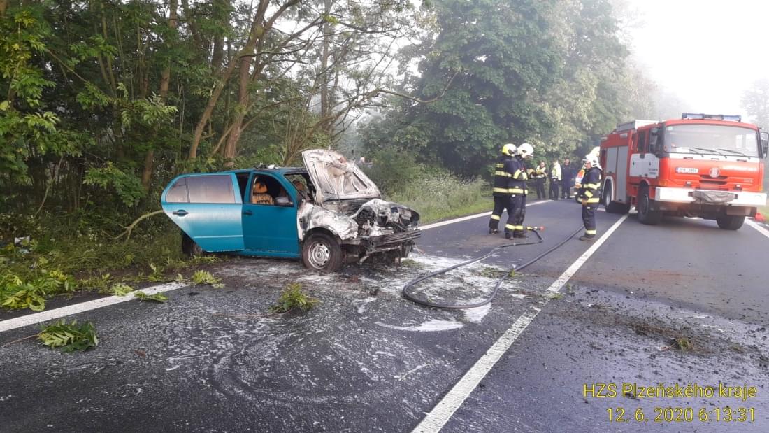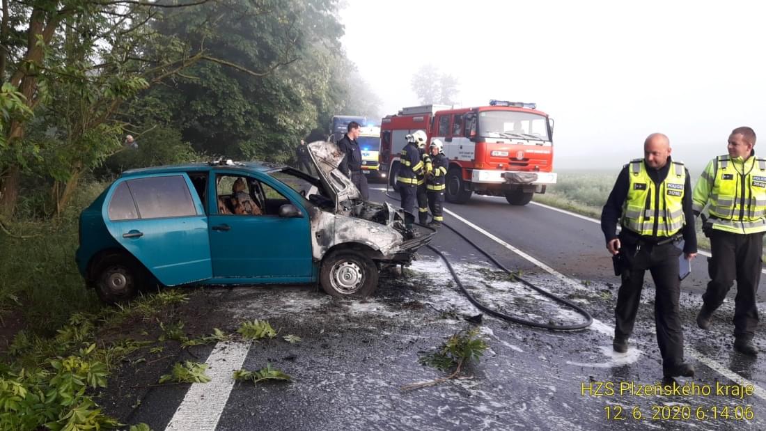 "Sedmadvacetiletá řidička jela směrem na Domažlice, nepřizpůsobila rychlost jízdy a při projíždění pravotočivé zatáčky vjela do protisměru, kde následně havarovala do stromu mimo silnici," popsala mluvčí policie s tím, že řidička utrpěla zranění a její vůz navíc začal hořet.
