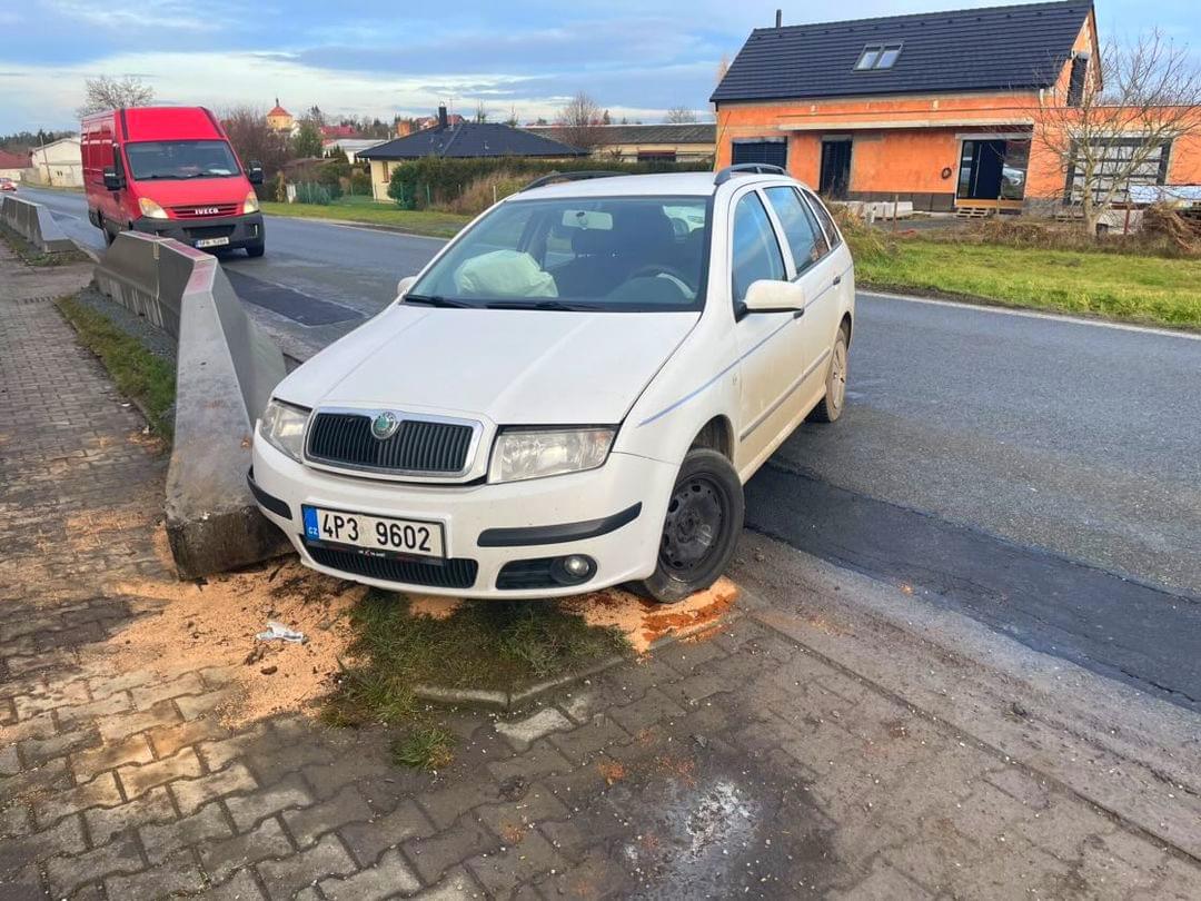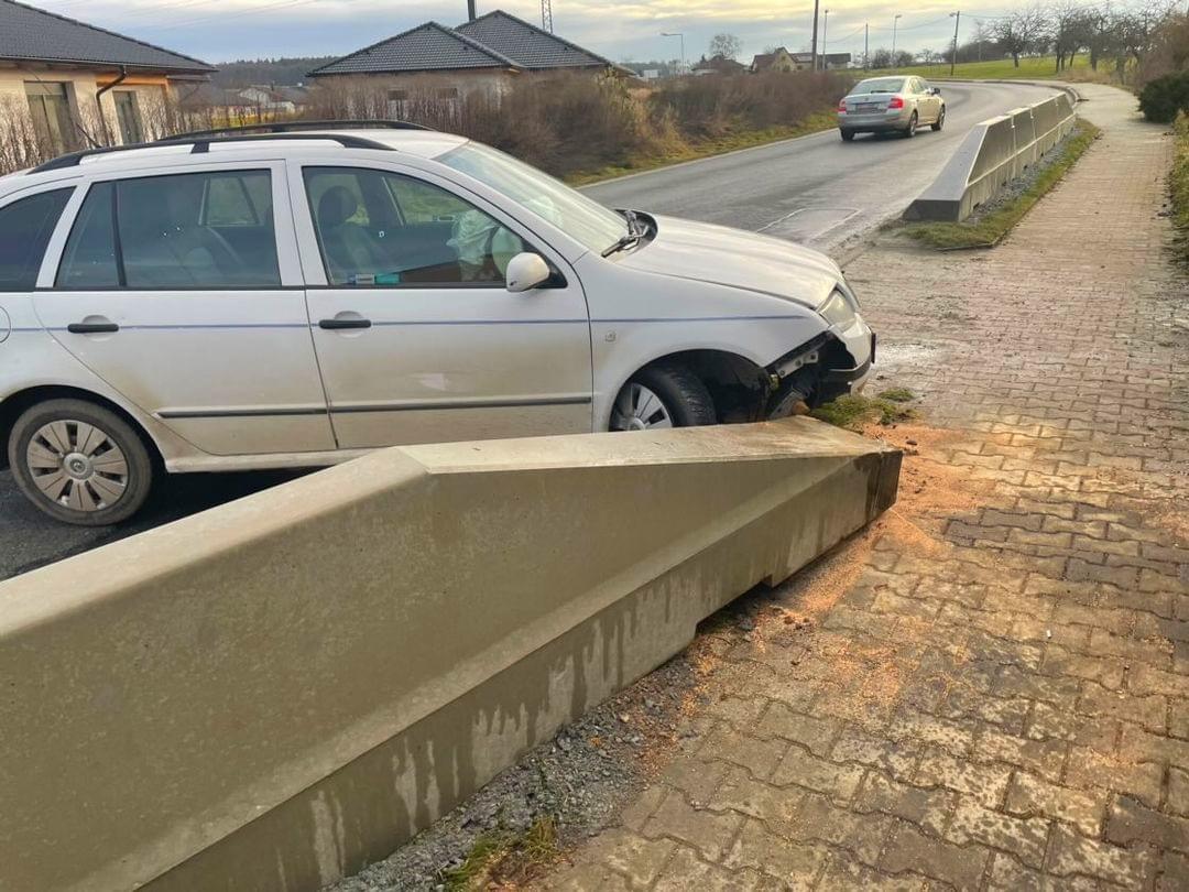 K první nehodě došlo těsně po osmé hodině u Chlumčan, kde řidička narozená v roce 1975 jedoucí s vozem Škoda ve směru od Hradčan náhle přejela do protisměru a narazila do betonových svodidel.