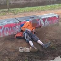 Navzdory nepříznivému počasí ležel na zemi pod lavičkou u lávky pro pěší vedoucí do pivovaru, oblečen pouze do mikiny. Na sobě měl ještě povyhrnuté tepláky a jeho jedna bota se povalovala poblíž. Podchlazený muž jen ležel, třásl se a vůbec s hlídkou nemluvil.