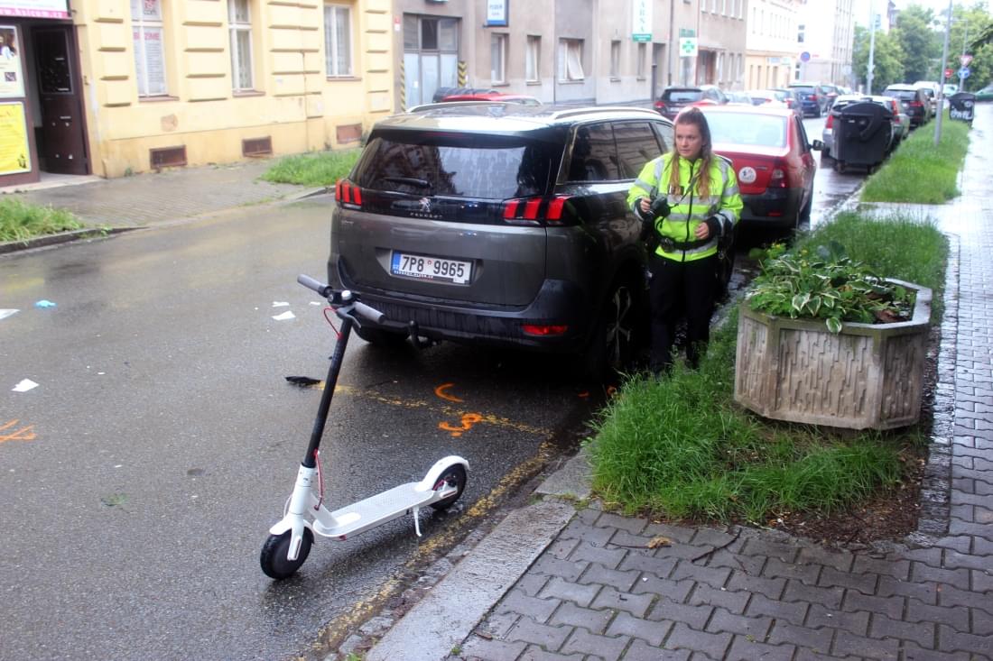 Řidič vozu projížděl jednosměrnou ulicí Čelakovského, když mu z pravé strany zpoza zaparkované dodávky vjel přímo do cesty muž na elektrokoloběžce. Přes veškerou snahu obou došlo ke střetu a jezdec z elektrokoloběžky byl odražen několik metrů.