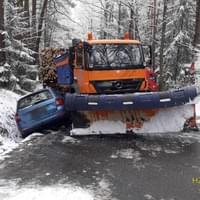 Dnes po osmé hodině ráno došlo na silnici mezi Strašicemi a Olešnou nedaleko křižovatky na Těně k dopravní nehodě, která silnici na několik hodin uzavřela. Na zasněžené silnici zde došlo ke střetu osobního vozu Škoda Octavia, kamionu s návěsem pro převoz dřeva a sypače s radlicí.