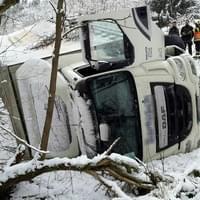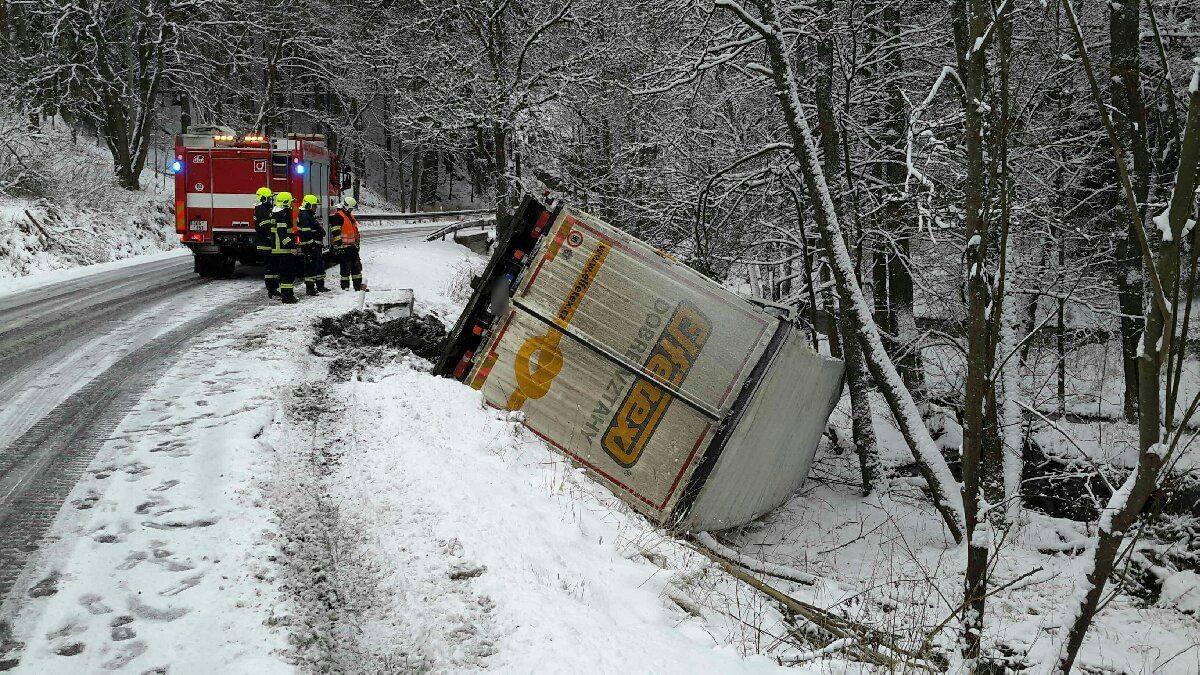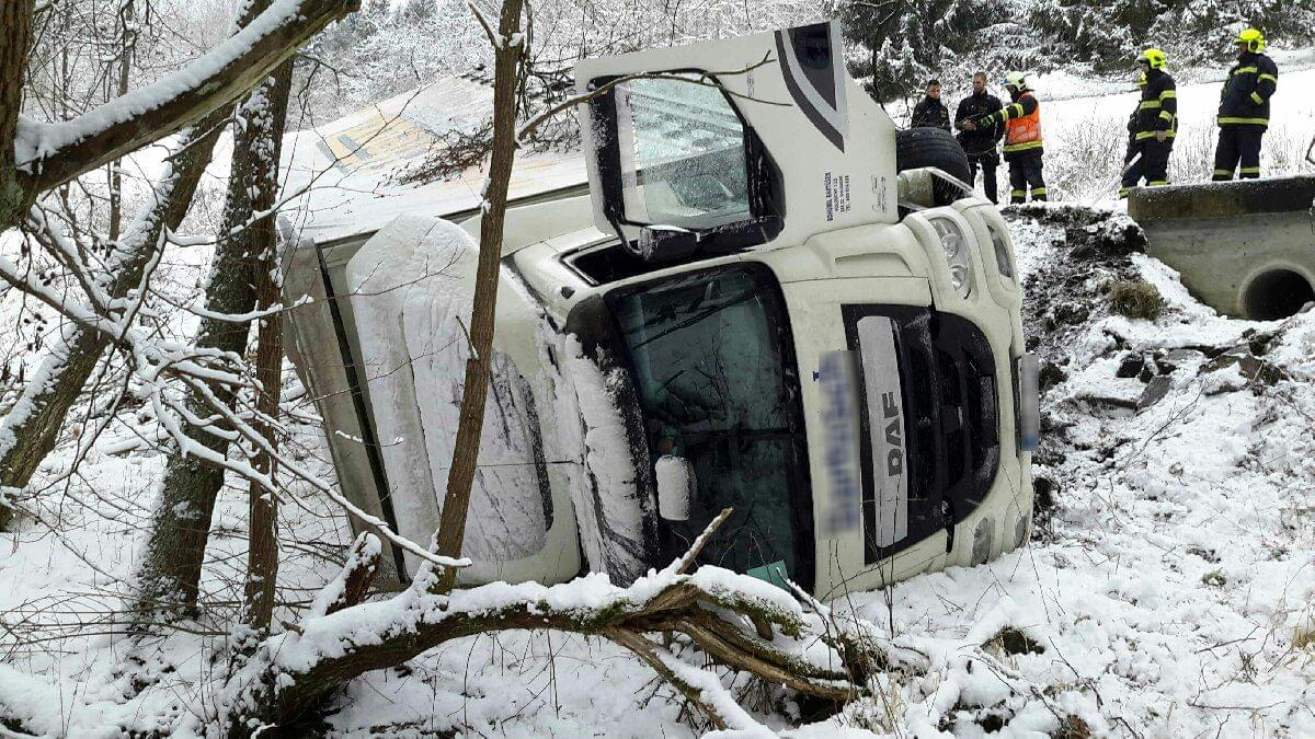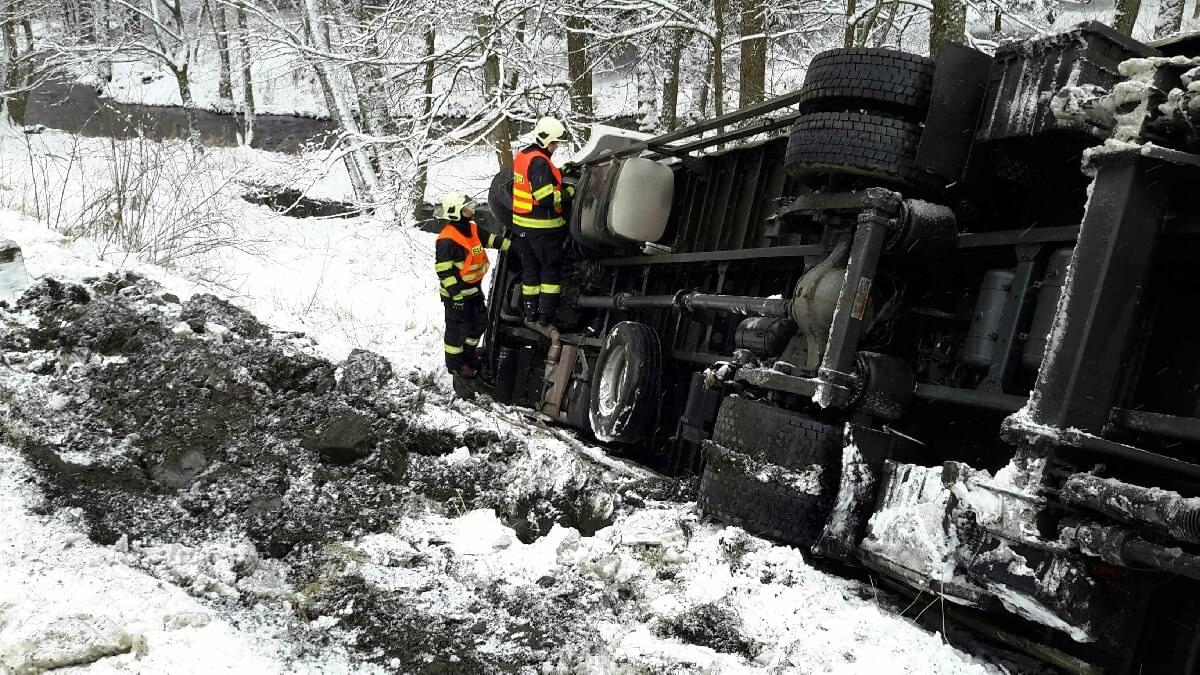 Na silnici z Mariánských Lázní směrem na Bečov u obce Mnichov havaroval před osmou hodinou ráno kamion, který se převrátil ze svahu. Na místo vyjeli policisté i hasiči, řidič naštěstí vyvázl bez zranění.