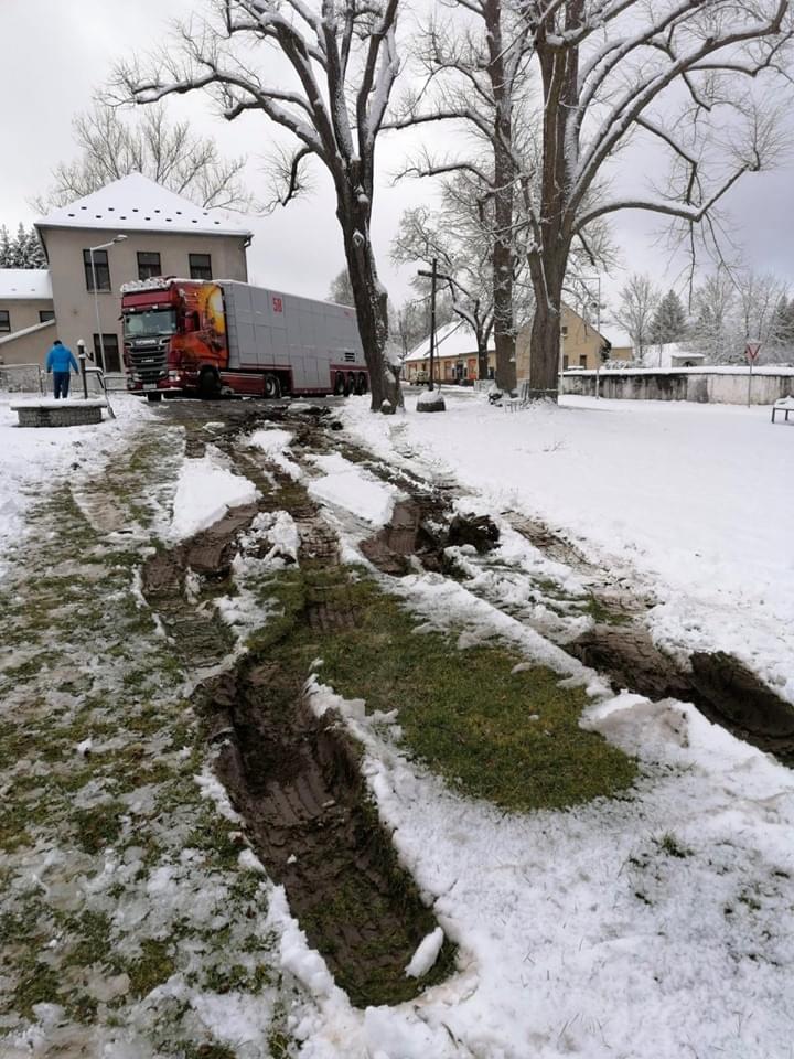 Velké překvapení čekalo dnes ráno na obyvatele Nových Mitrovic. Na trávníku v obecním parku se jim totiž přes noc objevil polský kamion.