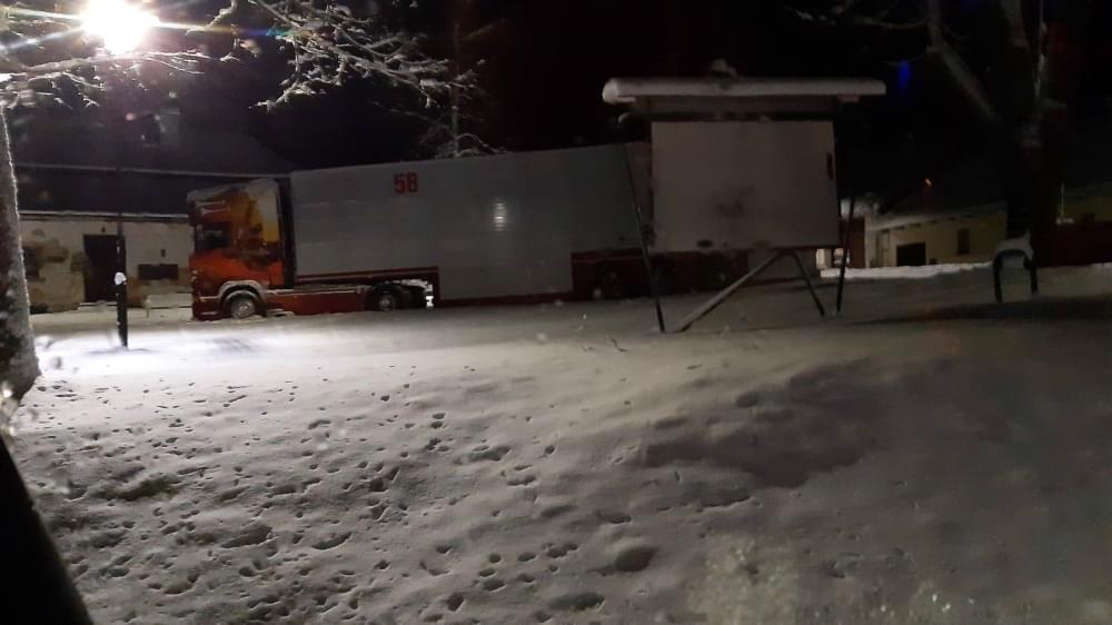 Řidič kamionu vysvětlil, že jel do nedalekého zemědělského družstva nakládat zvířectvo, ale na zasněžené silnici v jedenáct v noci nezvládl řízení a vyjel ze silnice do parku, odkud už nebyl schopen vyjet. S kolegou se proto rozhodli, že na místě přenocují a ráno si zavolají do družstva o traktor, který by jejich vozidlo vyprostil.