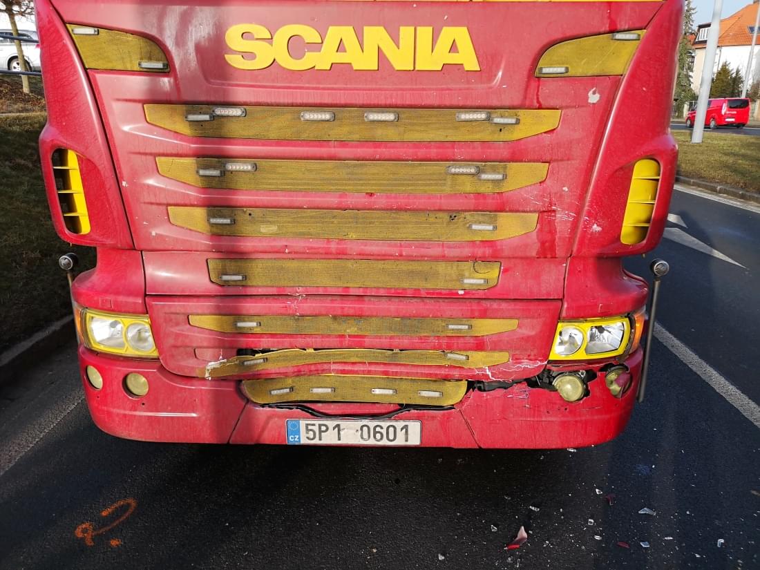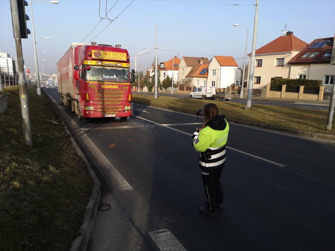 Podle informací z místa řidič kamionu narozený v roce 1981 nedával při přijíždění ke křižovatce s ulicí Na Terasách ve směru od centra pozor a zezadu narazil do vozu Škoda, stojícího na červené. Náraz škodovku odhodil několik metrů a žena na sedadle spolujezdce při něm utrpěla zranění, se kterým byla transportována do nemocnice.