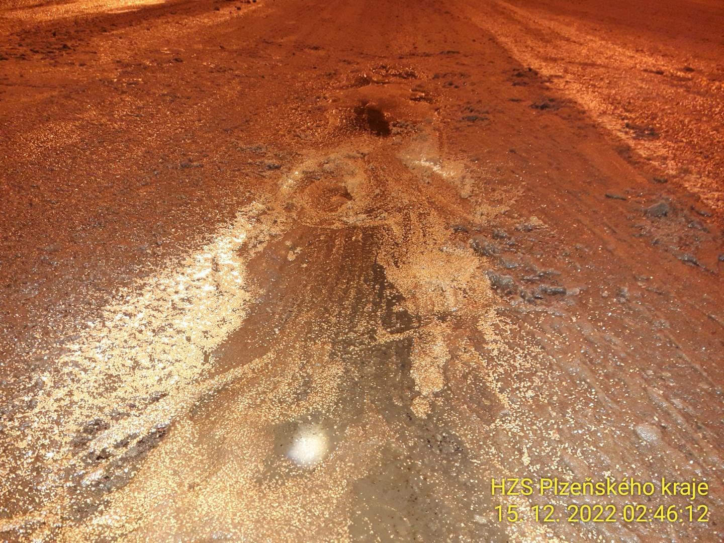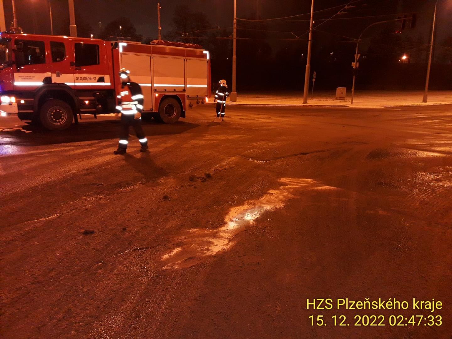 K rozsáhlému úniku nafty vyjížděli hasiči v noci na dnešek před druhou hodinou ráno na přivaděč od Plzně k dálnici D5 u Ejpovic. Zde si řidič kamionu značky Volvo všiml úniku nafty z nádrže, vůz odstavil a věc oznámil na tísňovou linku.