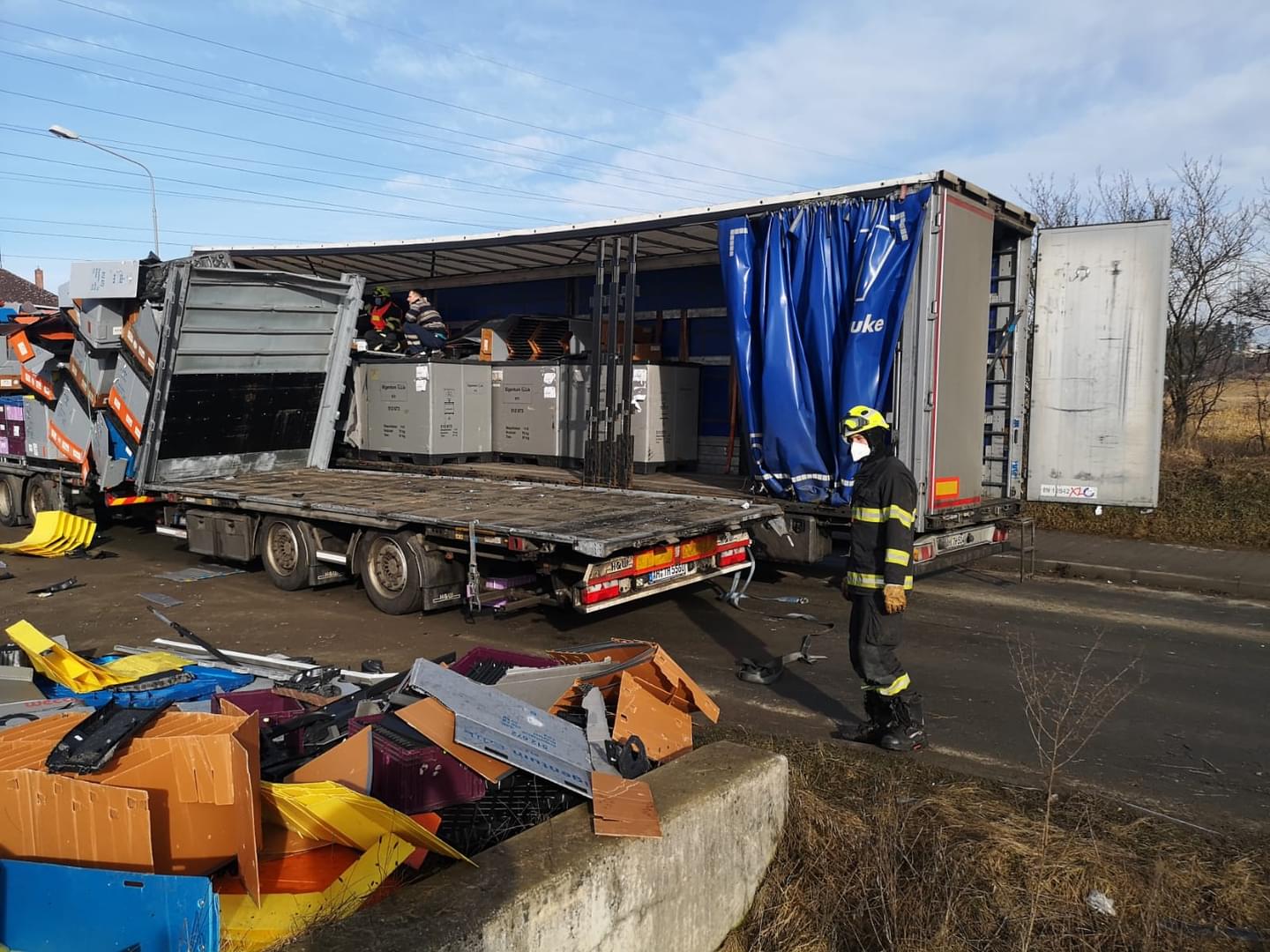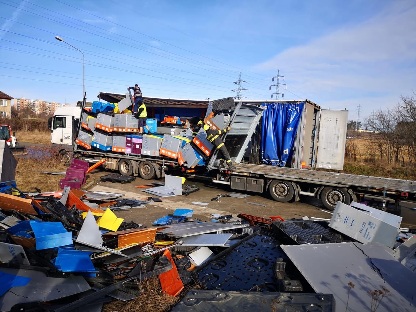 10 h Na místo již dorazil druhý kamion a začala překládka nákladu autodílů, kterou zajišťují hasiči. Očekávané uzavření ulice bude minimálně ještě dvě hodiny.