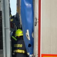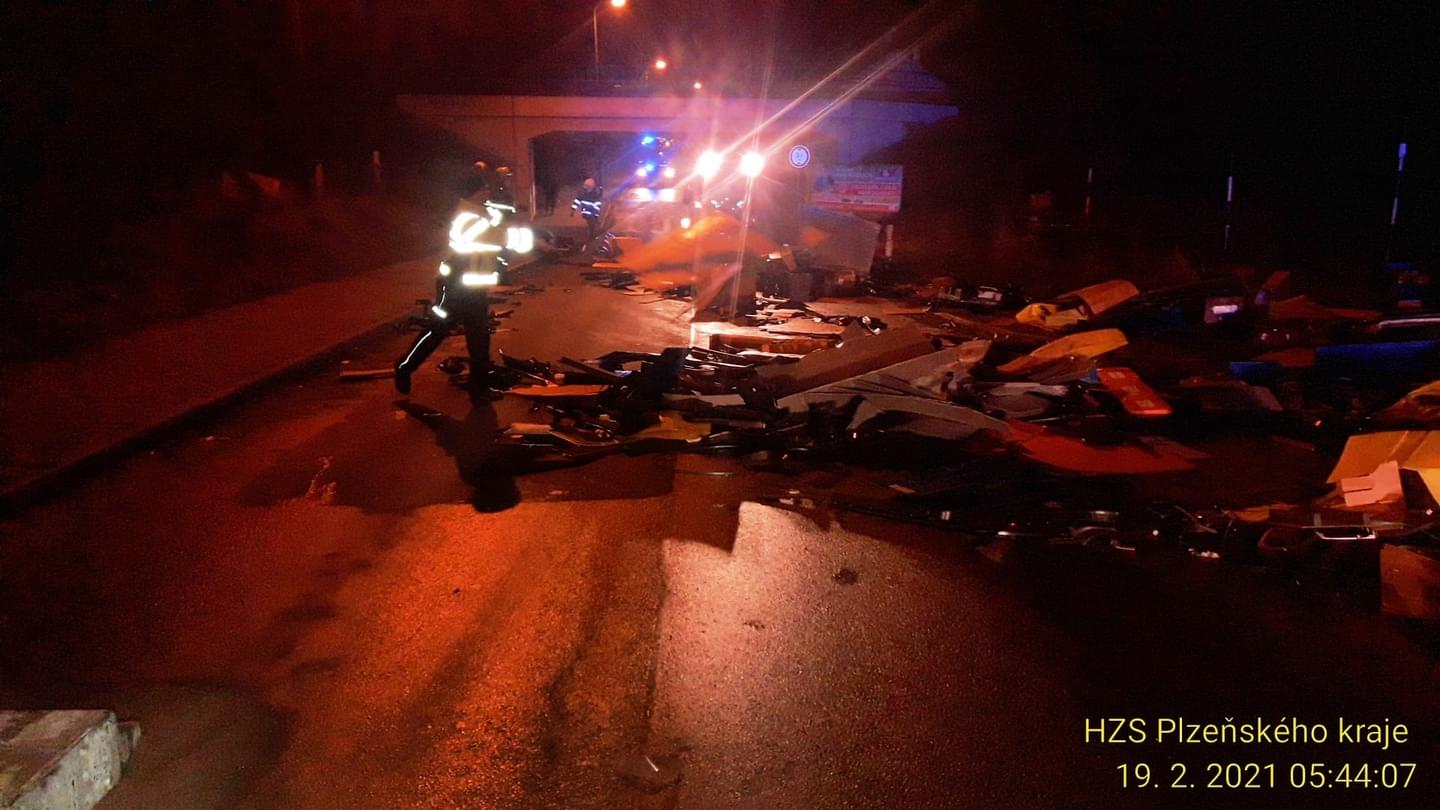 Náraz hrany mostu zcela zdemoloval návěs po celé jeho délce, serval plachtu a poškodil náklad. Na místo proto museli vyrazit hasiči.. "Ke zranění ani poškození mostu nedošlo, zato náklad náhradních dílů do automobilů se rozsypal do okolí. Abychom zprůjezdnili komunikaci co nejrychleji, přivezli jsme si na místo smykový nakladač. Provoz na železniční trati musel být na nějakou dobu zastaven," popsal mluvčí hasičů.