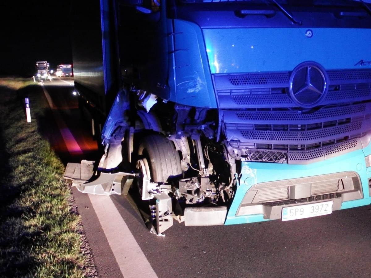 Kolem půl desáté v noci začala před kamionem značky Mercedes jedoucím ve směru na Plzeň náhle brzdit řidička vozidla Ford Focus a řidič kamionu již nestačil nehodě zabránit. Kamion do Fordu zezadu narazil, ten pokračoval ve smyku, až se převrátil na střechu.