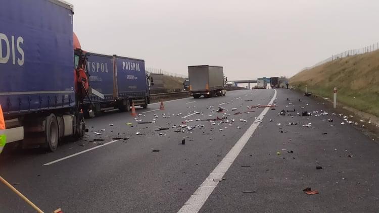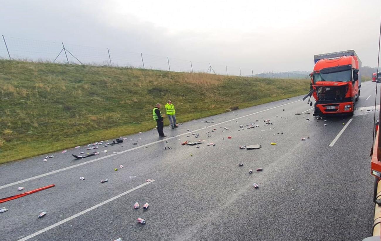 Nehoda se naštěstí obešla bez zranění, ale poškozená vozidla a vysypaný náklad plechovek piva blokuje dva jízdní pruhy. Dálnice je tak v tuto chvíli průjezdná pouze levým pruhem a na místě se tvoří kolony.