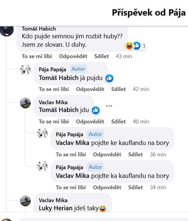 I dnes, tedy ve čtvrtek odpoledne, museli policisté do Area Bory kvůli této ženě opět vyjíždět.Na různých diskuzních skupinách se totiž svolávají její příznivci a vyhrožují ochrance odvetou, zatímco žena pobíhá po parkovišti a vylepuje či za stěrače aut umisťuje letáky s varováním před ostrahou.