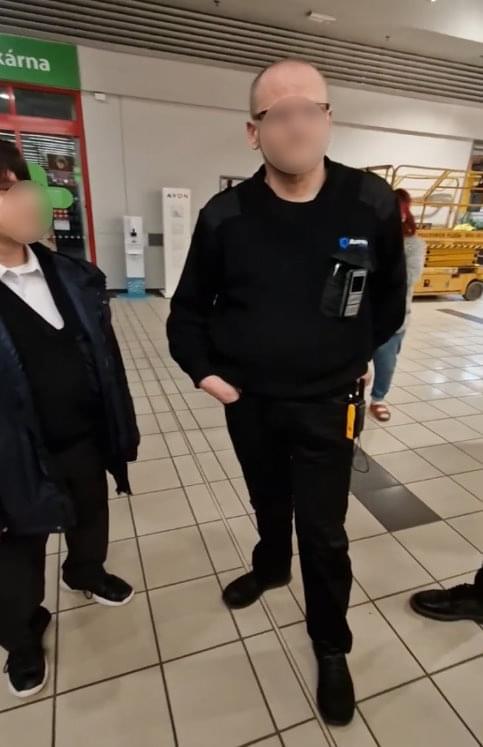 Ze záznamu je patrné, že strážný ženu několikrát upozornil, že je v prostorách nákupního centra zakázáno natáčení a vyzval jí k opuštění prostor, na což má vzhledem ke svému pověření nepopiratelné právo.