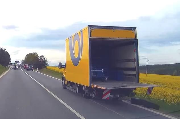Dnes po páté hodině odpoledne došlo na hlavním tahu z Plzně na Plasy před Kaznějovem k dopravní nehodě. Podle tiskové mluvčí policie jel řidič narozený v roce 1954 s vozidlem Iveco Daily České pošty ve směru od Třemošné na Kaznějov a asi pět set metrů za železničním přejezdem mu za jízdy upadlo kolo. To následně narazilo do protijedoucího vozu Volkswagen Passat, který řídila třicetiletá žena a již neměla sebemenší šanci střetu zabránit.
