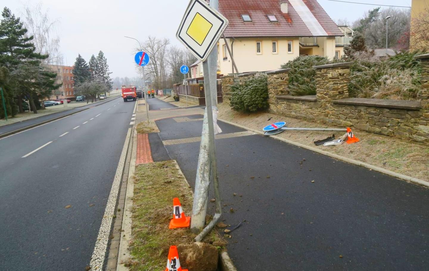 Včera po deváté hodině dopoledne došlo v Masarykově ulici v Horšovském Týně k dopravní nehodě. "Čtyřiadvacetiletý řidič vozidla tovární značky Ford F-150 jedoucí od centra směrem na obec Horšov se podle jeho vyjádření lekl kočky přebíhající přes pozemní komunikaci, nepřiměřeně zareagoval, strhnul řízení vpravo, najel na pravý obrubník a narazil do dopravních značek Stezka pro chodce a cyklisty dělená, Konec stezky pro chodce a cyklisty dělené a Hlavní pozemní komunikace a dále do sloupu veřejného osvětlení," popsala nehodu mluvčí policie s tím, že střetu vozidla se zvířetem nedošlo.