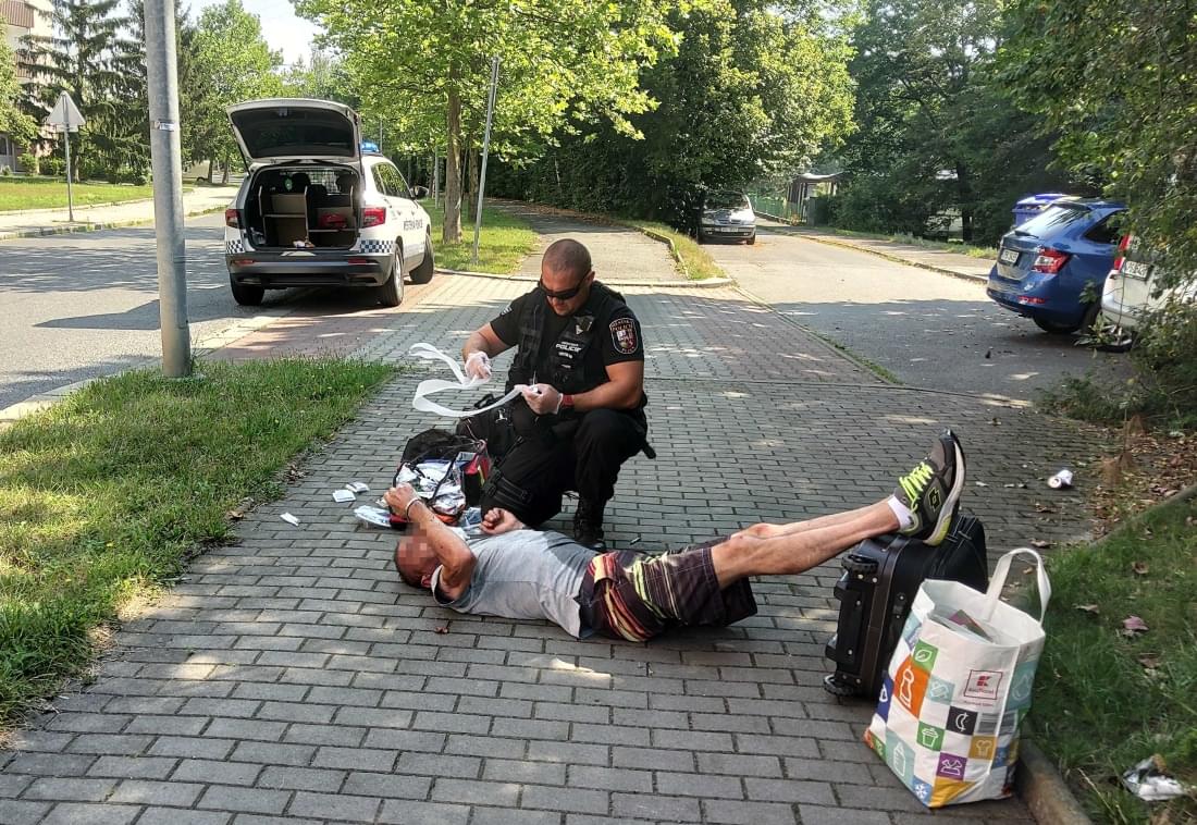 "Padesátiletý cizinec se třásl, okolo hlavy měl kaluž krve a vůbec nereagoval na podněty strážníků. Hlídka proto zavolala záchranáře a začala muži okamžitě poskytovat první pomoc, k čemuž využila zdravotnického materiálu ze záchranářského batohu ve vozidle," popsala tisková mluvčí strážníků.