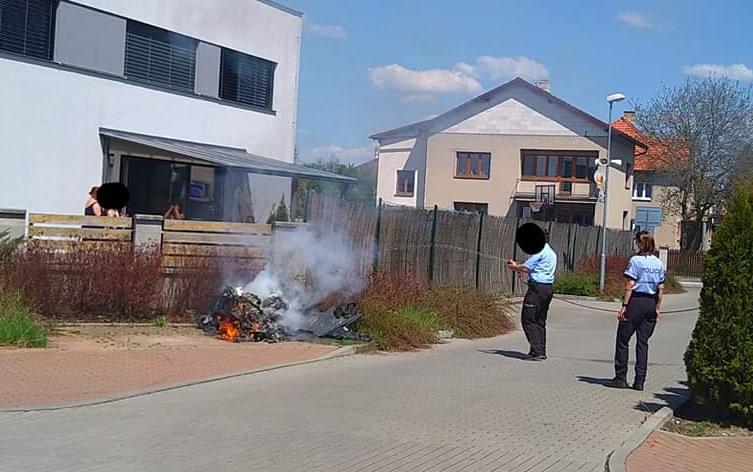 Dnes odpoledne před druhou hodinou došlo v Dobřanech v Tiché ulici k zapálení plastového kontejneru na smíšený odpad. První na místě byli místní policisté, a protože hrozilo nebezpečí, že se oheň rozšíří na další nádoby na odpad, plot i křoviska, okamžitě zahájili hašení sousedy zapůjčenou hadicí.