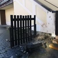Kontejner shořel celý a plameny bohužel částečně poškodily i schodiště do prvního patra. Hasiči po uhašení zbytků kontejneru museli prohlédnout i celou historickou budovu, protože kouř plný žhavých jisker zasáhl její střechu a hasiči se obávali možnosti skrytých ohnisek v trámoví.