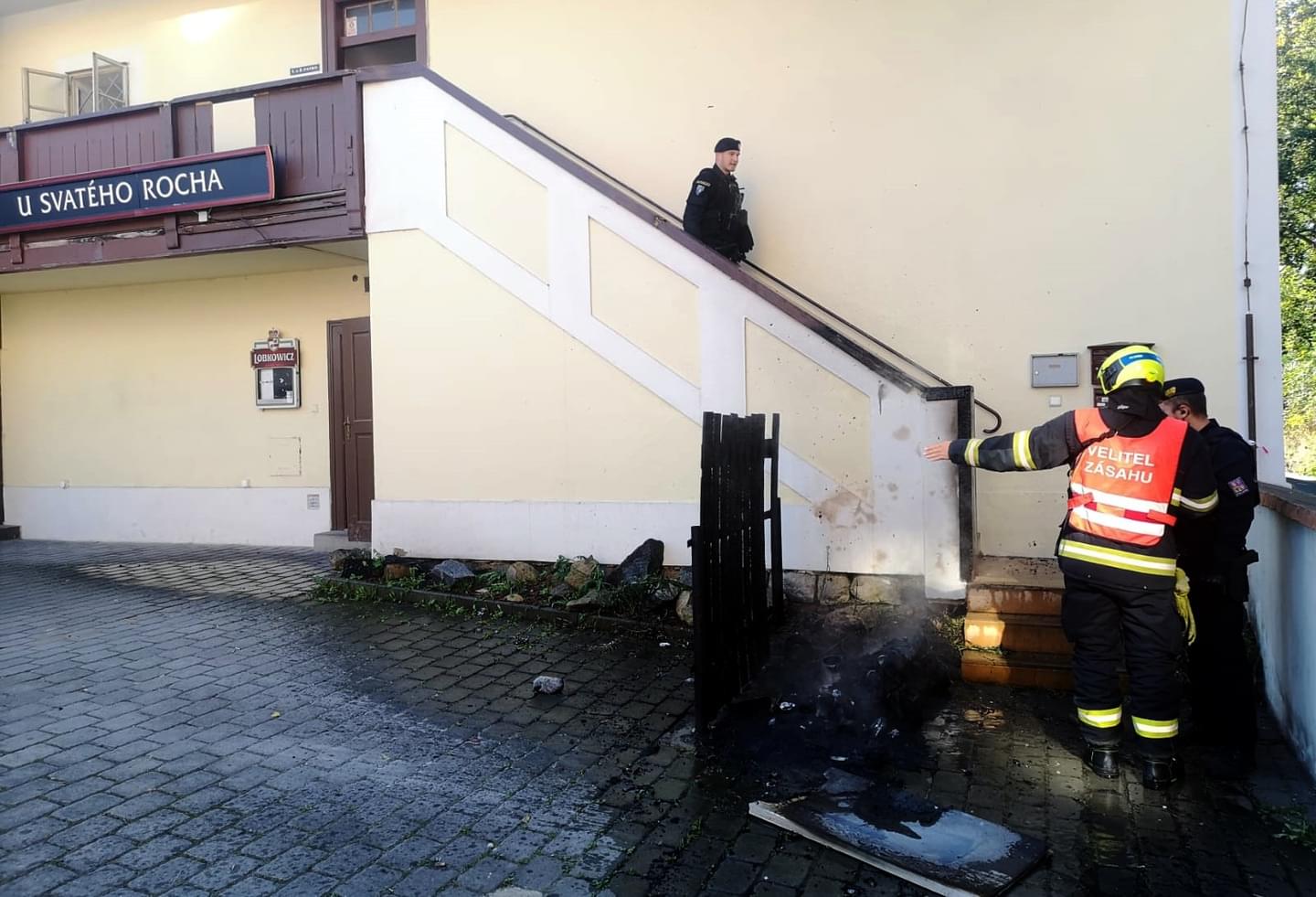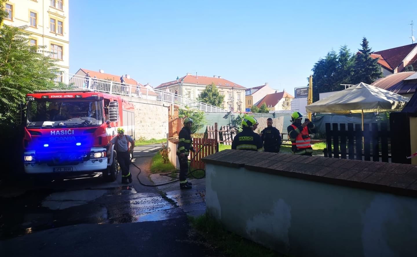 Hasiči v Plzni dnes dopoledne vyjížděli na Roudnou, kde nedaleko Rooseveltova mostu před restaurací U Svatého Rocha někdo zapálil plastový kontejner na odpad.