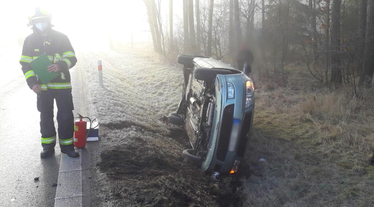 "Řidič narozený v roce 1958 jel s vozidlem Škoda Octavia ve směru od obce Libyně na Kralovice. Dle prvotních informací na přímém úseku začal předjíždět, všiml si však zledovatělé vozovky, přibrzdil, dostal smyk a havaroval do levého silničního příkopu.