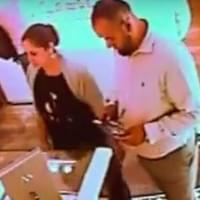 O deset minut později se do prodejny vrátil se zatím neznámou ženou, která si začala prohlížet drahé prsteny a tím zaměstnala jednu z prodavaček. Muž využil této nepozornosti a s druhou prodavačkou si šel prohlížet šperky do jedné z výkladních skříní na opačné straně prodejny. Podezřelý muž ukazoval prstem na jeden z prstenů a přitom vyndal zlatý prsten osázený brilianty, který si poté strčil do kapsy u kalhot. Následně oba podezřelý z prodejny odešli.