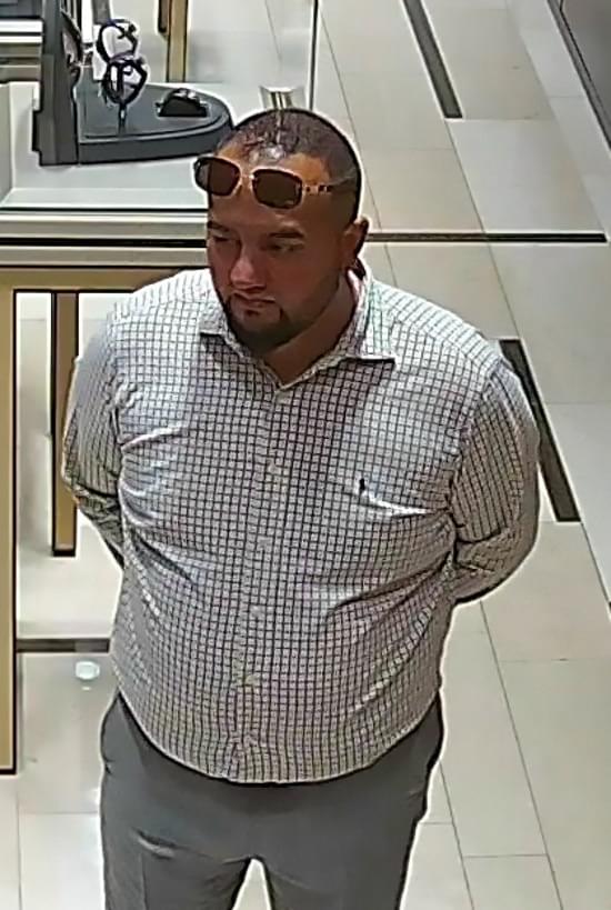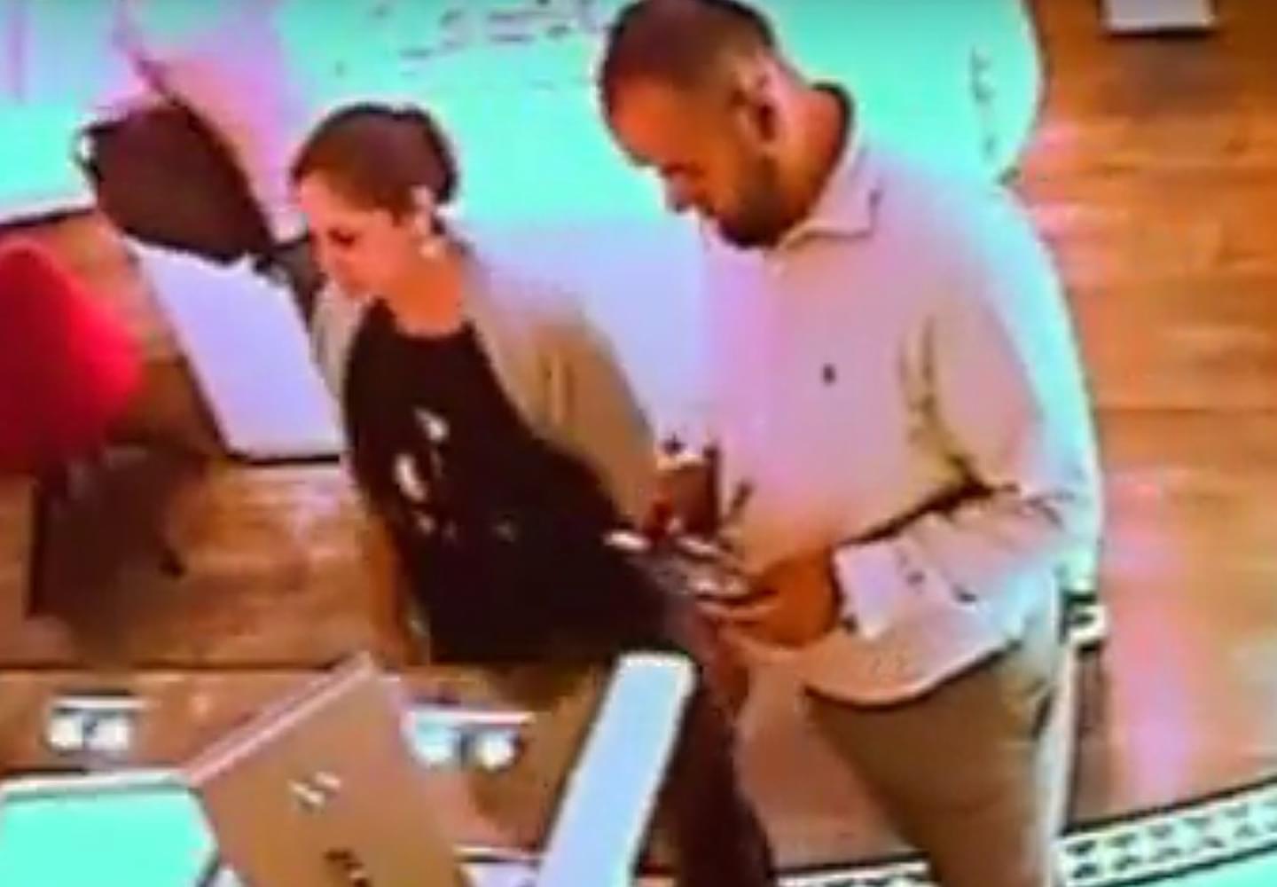 O deset minut později se do prodejny vrátil se zatím neznámou ženou, která si začala prohlížet drahé prsteny a tím zaměstnala jednu z prodavaček. Muž využil této nepozornosti a s druhou prodavačkou si šel prohlížet šperky do jedné z výkladních skříní na opačné straně prodejny. Podezřelý muž ukazoval prstem na jeden z prstenů a přitom vyndal zlatý prsten osázený brilianty, který si poté strčil do kapsy u kalhot. Následně oba podezřelý z prodejny odešli.