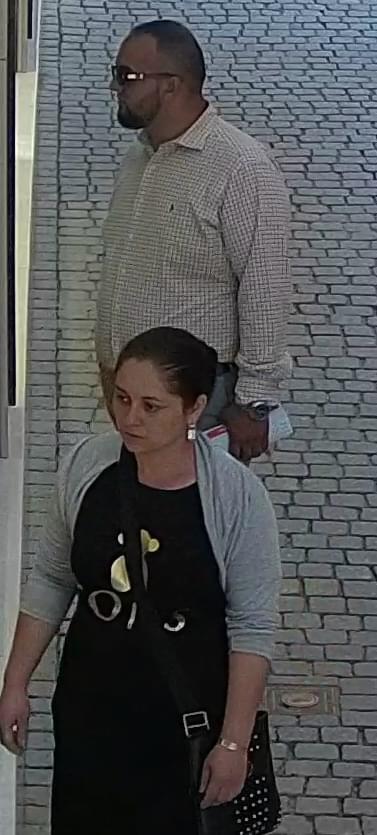"Hledaný muž je ve věku 35 až 45 let, vysoké silnější postavy, tmavší pleti, nosí upravený plnovous a má prořídlé tmavé vlasy. Na sobě měl světlou košili s dlouhým rukávem, světle hnědé kalhoty, černé společenské boty.Hledaná žena je ve věku 35 až 45 let, menší střední postavy, má černé delší vlasy a je tmavší pleti. Na sobě měla černé šaty, černé legíny, světlý svetr a černé boty.