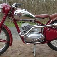 - Jawa 350, pérák, barva červená, jednosedadlový special na motokros rok 1952