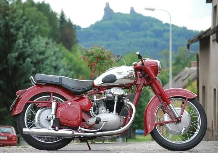 - Policejní stíhací motocykl jawa 500 OHC 1952 barva červená