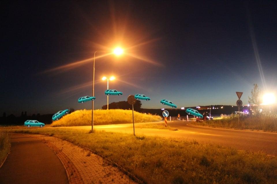Z neznámého důvodu je střed kruhového objezdu vytvořen několikametrovou, vysokou hromadou hlíny a vede k němu dlouhá rovná silnice, lákající řidiče k vyšší rychlosti, takže když kruháč přehlédnete, spolehlivě funguje jako katapult. Nebezpečný kruhový objezd je sice osazen lampou, ale ta včera opět nesvítila.