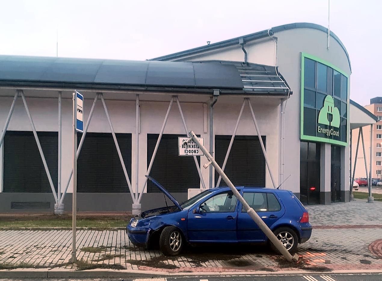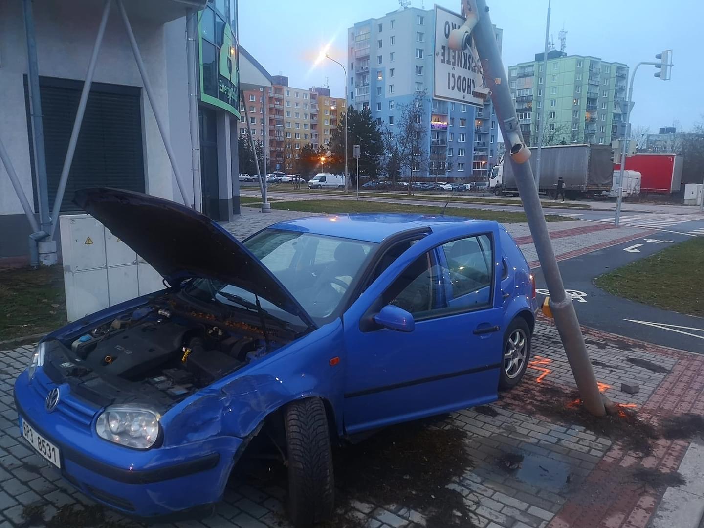 Dnes před čtvrtou hodinou odpoledne došlo na křižovatce ulic Studentská a Krašovská v Plzni k poněkud kuriózní dopravní nehodě, při které vůz Volkswagen narazil do semaforu na přechodu pro chodce.