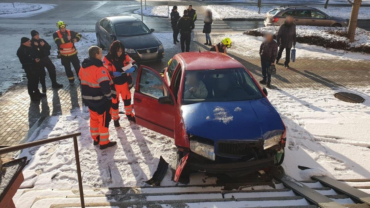 "Osmnáctiletý řidič vozu Volkswagen nedal při průjezdu křižovatkou přednost vozu Škoda osmdesátiletého řidiče jedoucího po hlavní komunikaci, přičemž došlo ke střetu, po kterém oba vozy skončily na chodníku a vůz Škoda vyjel na schodiště budovy," popsal nám nehodu tiskový mluvčí policie s tím, že zranění při střetu utrpěla devětasedmdesátiletá spolujezdkyně z vozu Škoda.