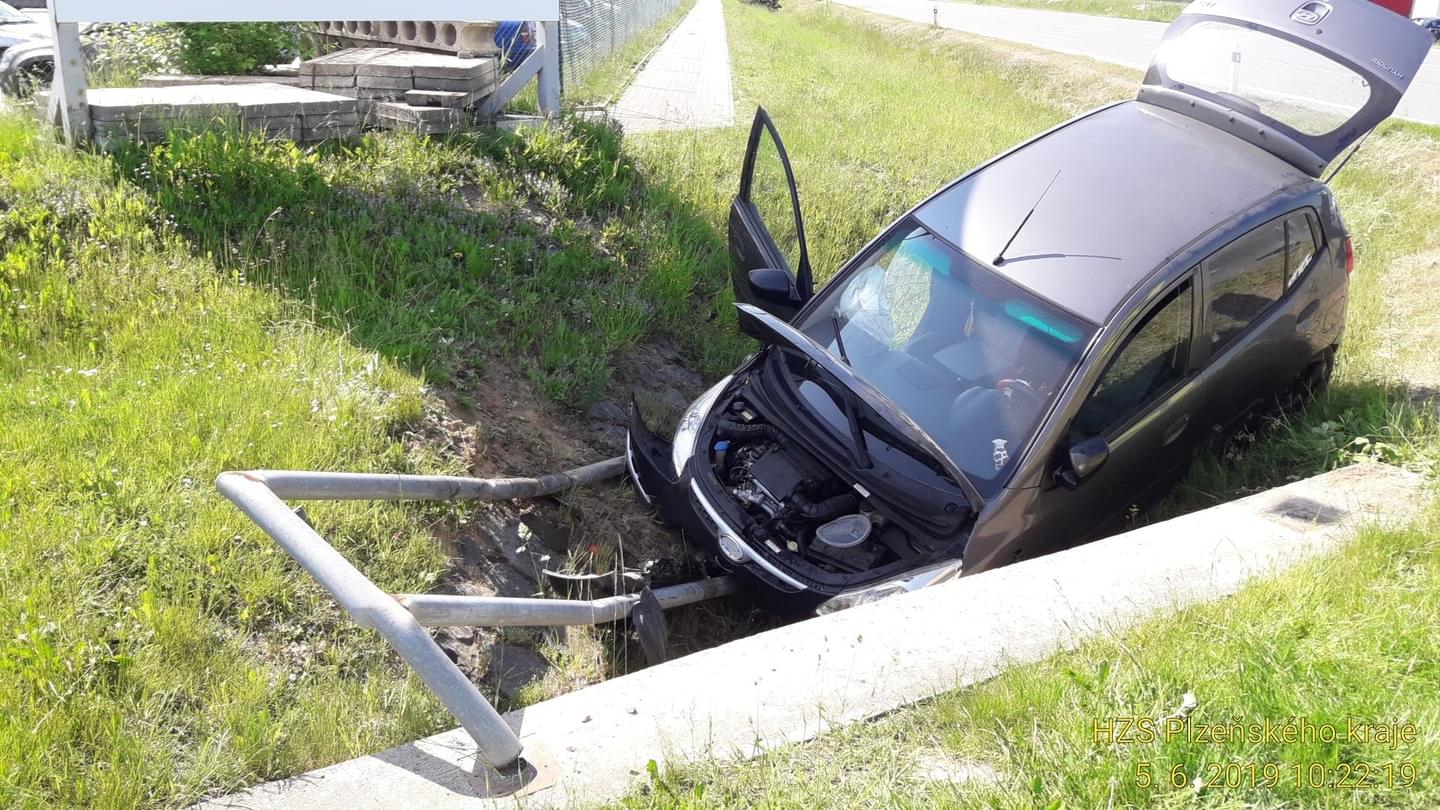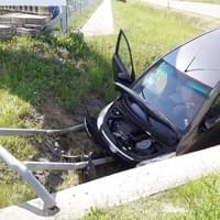 Podle tiskové mluvčí policie řidič narozený v roce 1970 nezvládl řízení, narazil do zábradlí vjezdu a následně havaroval v silničním příkopu.