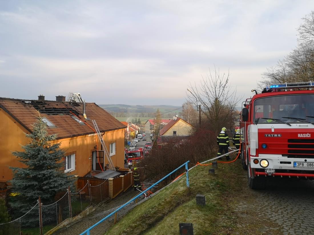Třináct jednotek profesionálních i dobrovolných hasičů z osmi stanic vyjelo dnes těsně před jedenáctou hodinou dopoledne k požáru rodinného domu nedaleko obecního úřadu v Kozolupech.