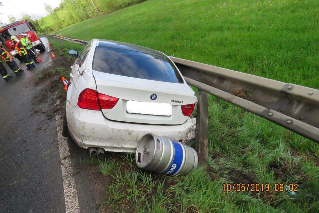 "Šestadvacetiletý řidič jedoucí od obce Domažlice na obec Horšovský Týn při průjezdu pravotočivé zatáčky nepřizpůsobil rychlost jízdy a na mokré vozovce dostal s vozidlem smyk. Následně přejel s vozidlem do protisměru a dále za levou krajnici, kde narazil do ocelových svodidel," popsala tisková mluvčí policie.