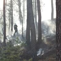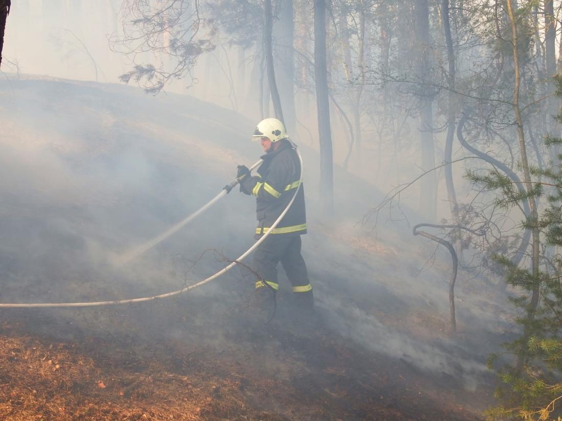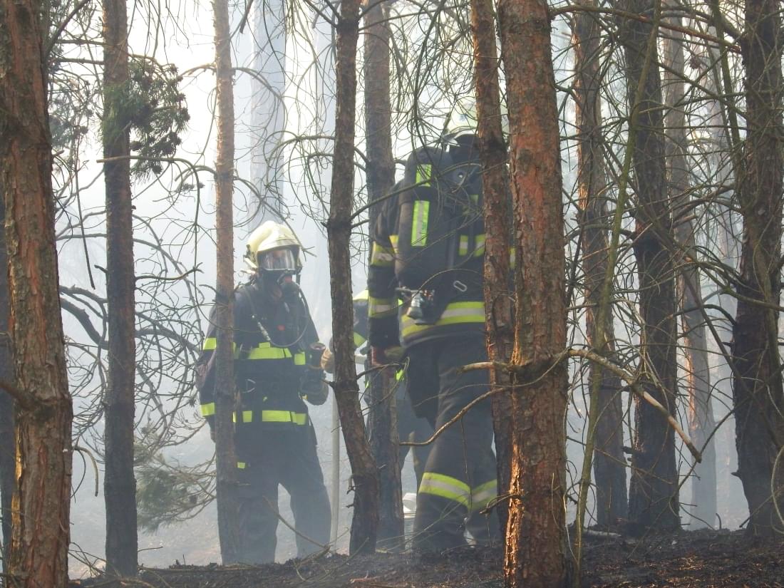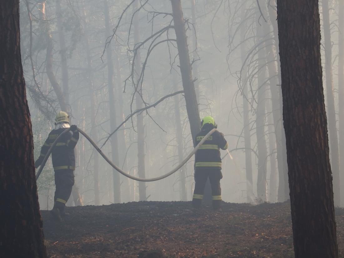 Hasiči k mapování požáru a jeho skrytých ohnisek nasadili dron s termokamerou a po několika hodinách se jim podařilo zastavit šíření ohně korunami stromů. V hašení podloží ale stále pokračují a podle tiskového mluvčího hasičů budou pokračovat zřejmě až do zítřka.