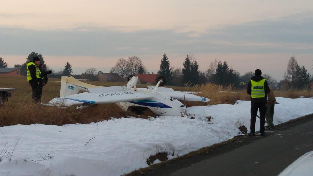 Pilot chtěl zřejmě nouzově přistát na poli, během manévru se letadlo převrátilo a skončilo na střeše.