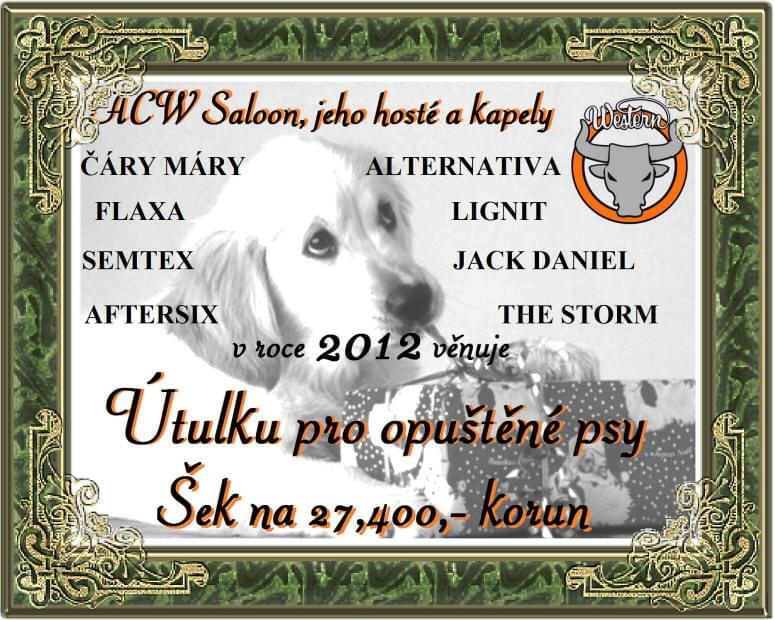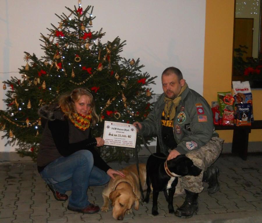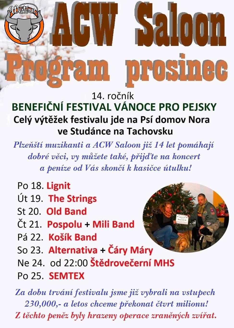 Tento víkend dorazil do Plzně do ACW Saloonu šéf Psího domova Nora ze Studánky na Tachovsku Karel Bobál, převzal dárky pro svá zvířata a hlavně výtěžek letošního festivalu Vánoce pro pejsky 24,500 korun.