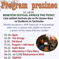 Právě dnes začíná v Plzni benefiční hudební festival Vánoce pro pejsky, který zde funguje již 14 let a jehož výtěžek šel každoročně na pomoc útulku pro opuštěné psy v Plzni. Loni celkem předaná částka od začátku festivalu překročila 230 tisíc korun a letos se plánuje překonat čtvrt milionu.